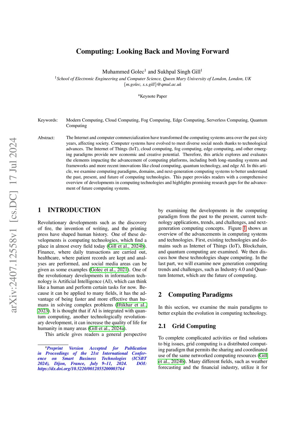 Computing: Looking Back and Moving Forward