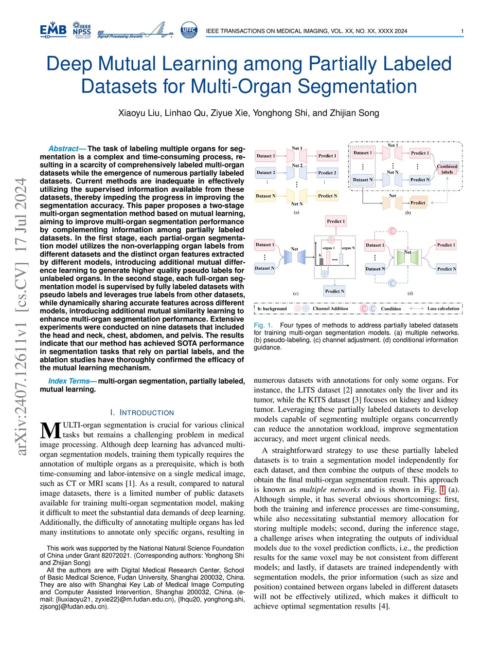 Deep Mutual Learning among Partially Labeled Datasets for Multi-Organ
