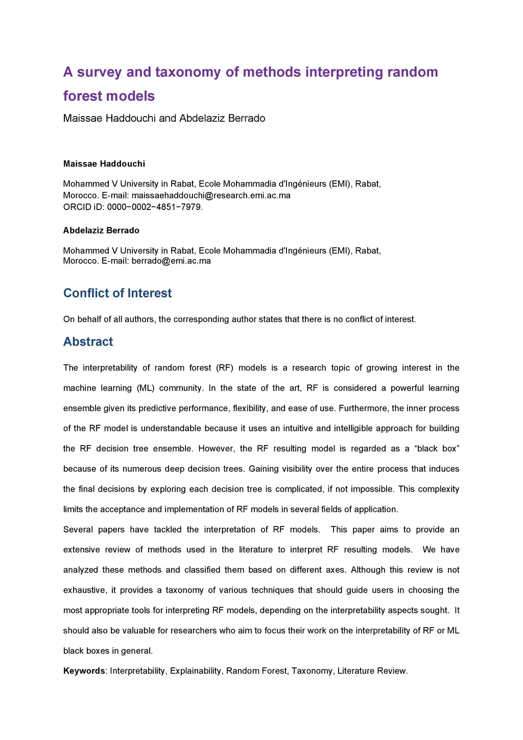 A survey and taxonomy of methods interpreting random forest models