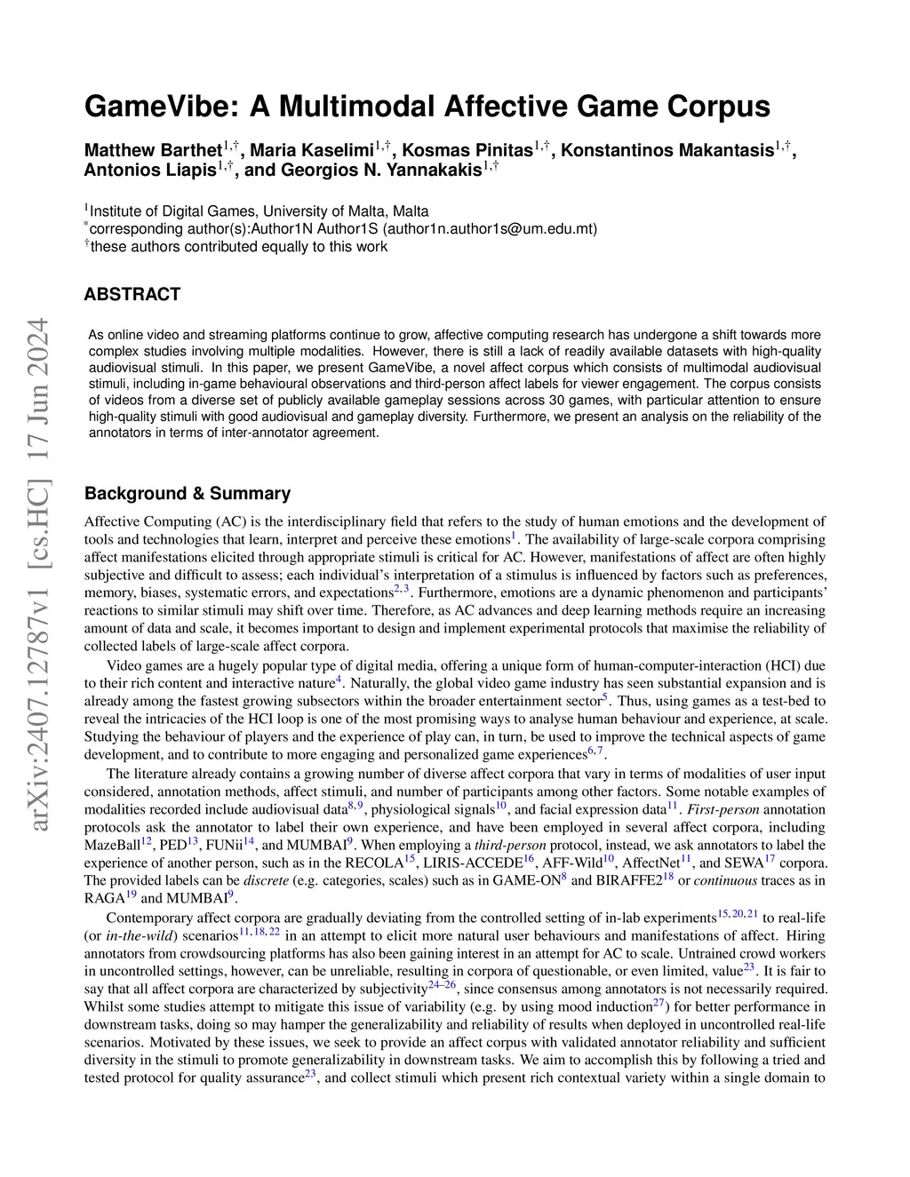 GameVibe: A Multimodal Affective Game Corpus