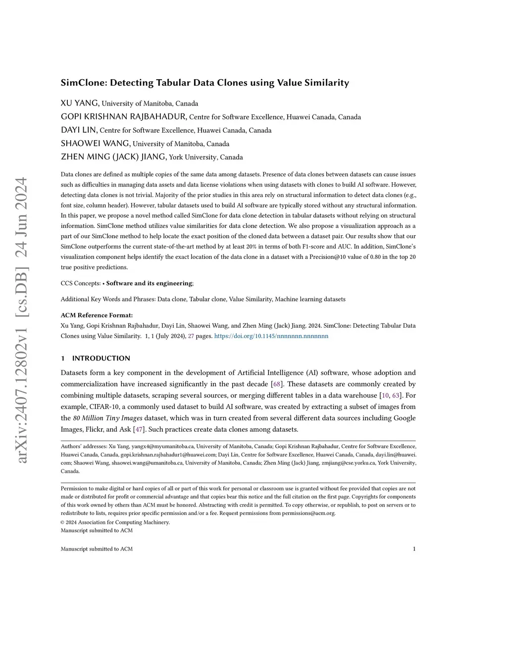 SimClone: Detecting Tabular Data Clones using Value Similarity