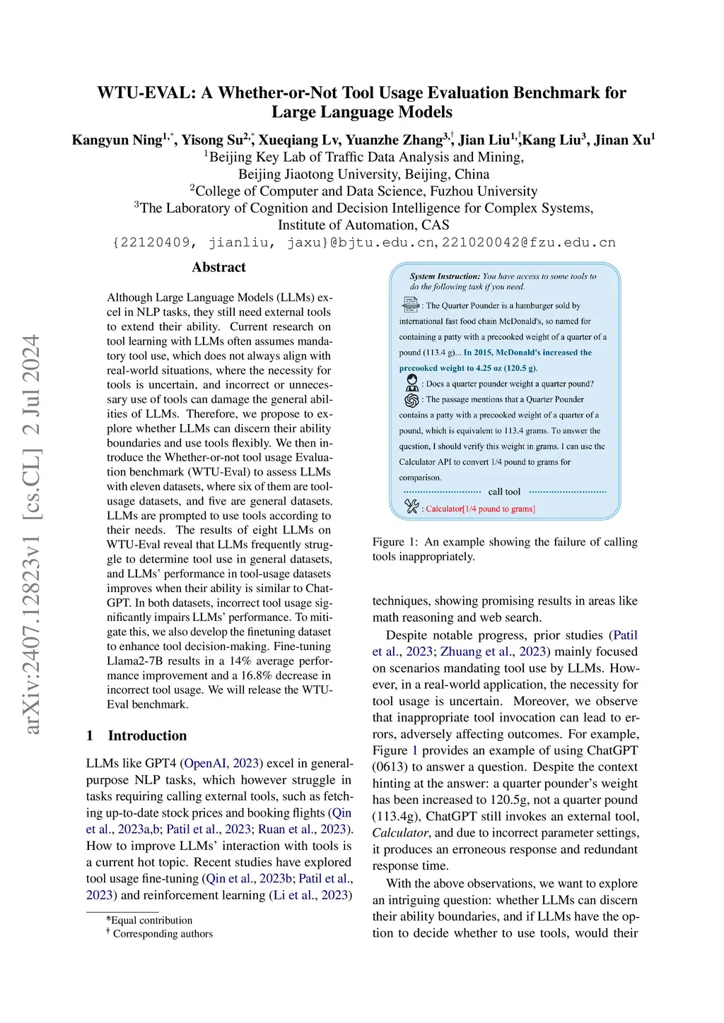 WTU-EVAL: A Whether-or-Not Tool Usage Evaluation Benchmark for Large