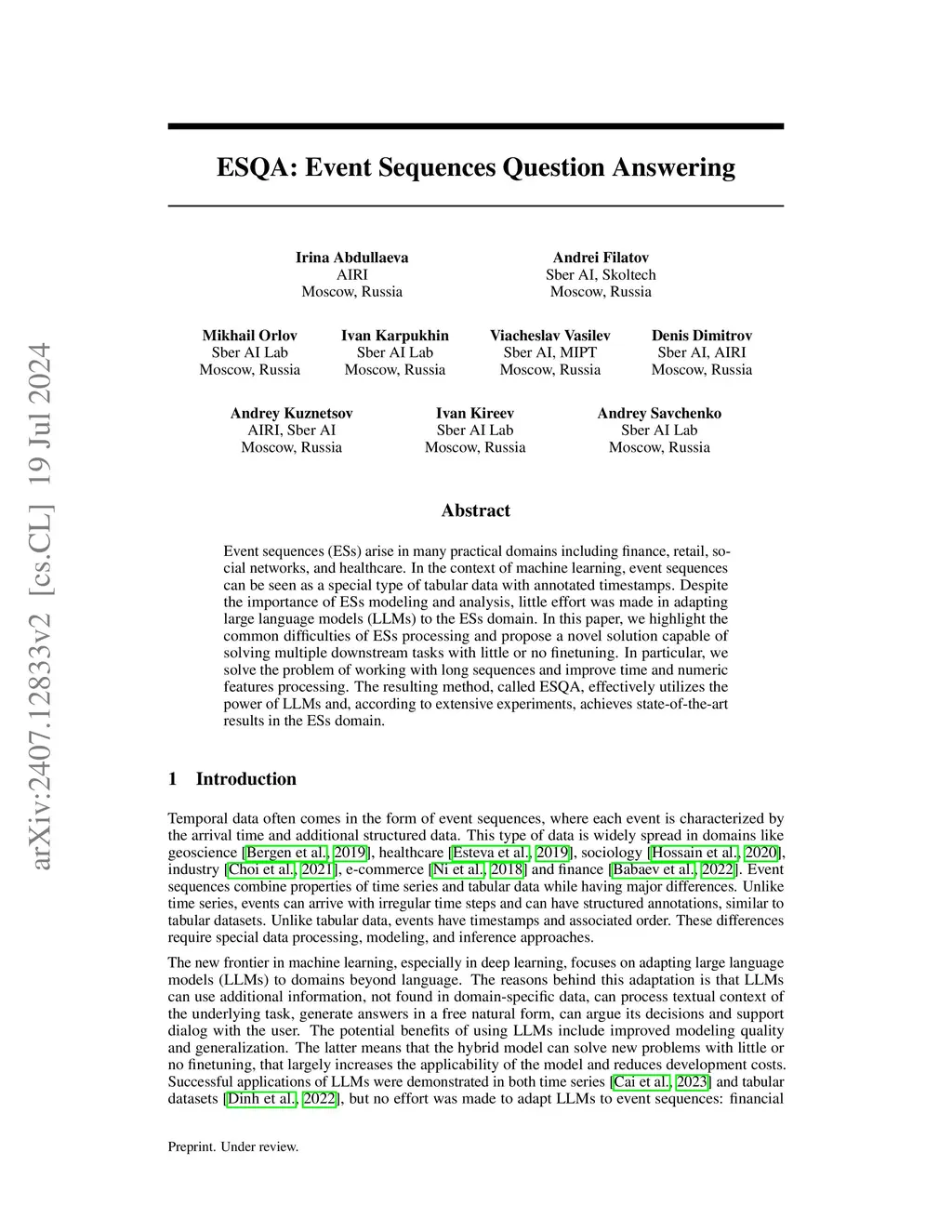 ESQA: Event Sequences Question Answering