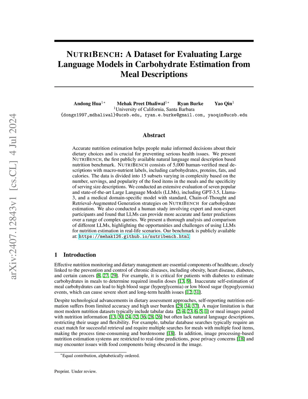 NutriBench: A Dataset for Evaluating Large Language Models on Nutrition Estimation from Meal Descriptions