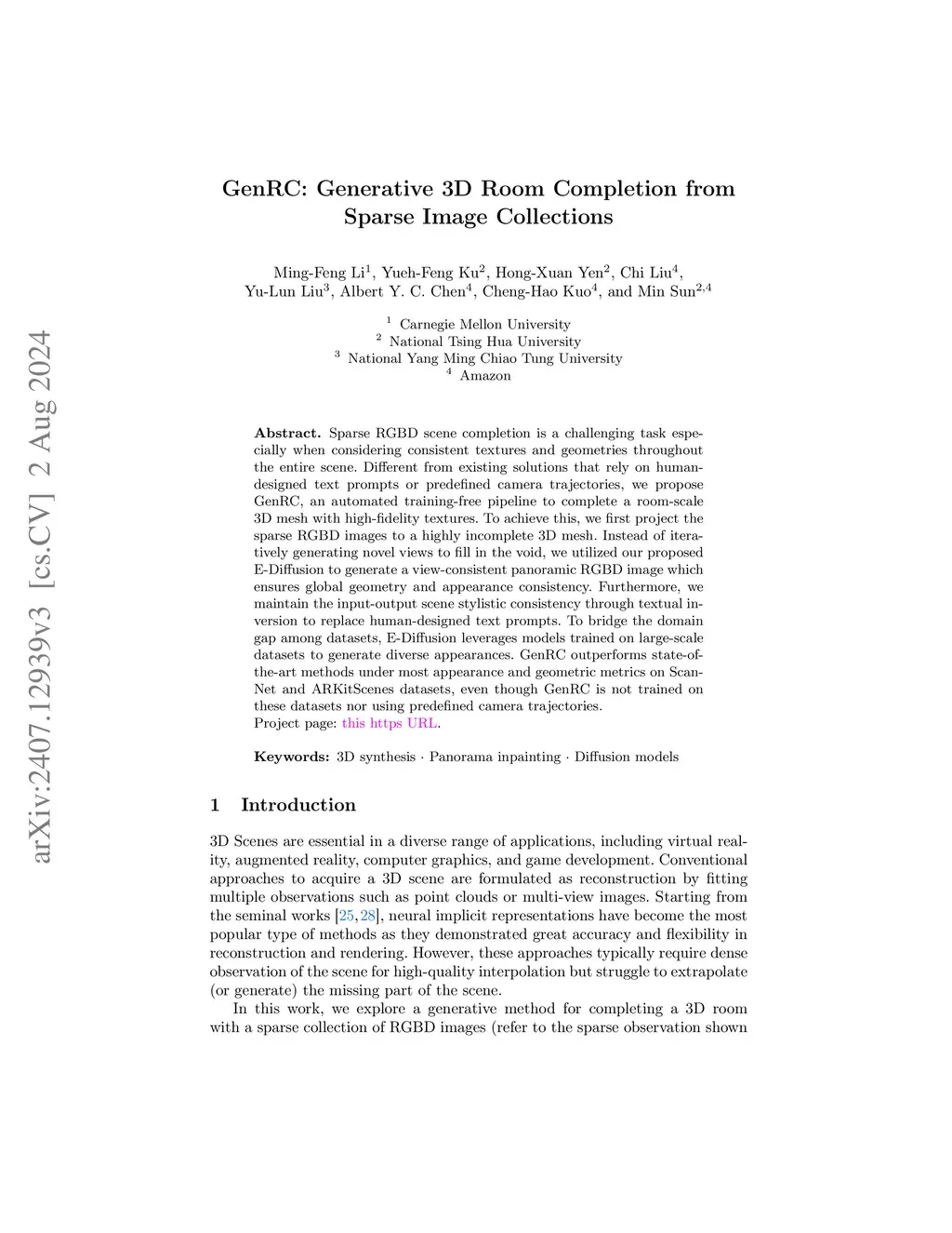 GenRC: Generative 3D Room Completion from Sparse Image Collections
