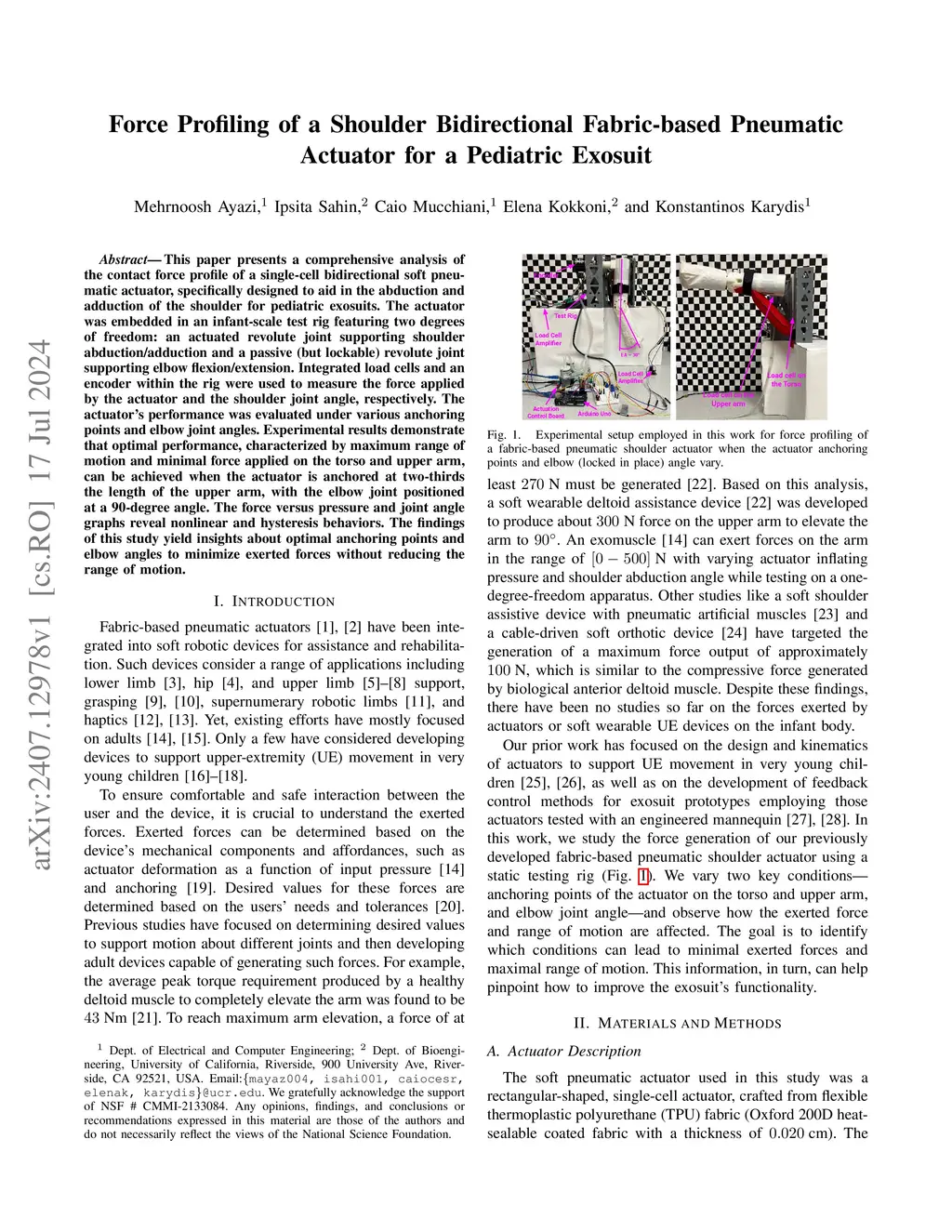 Force Profiling of a Shoulder Bidirectional Fabric-based Pneumatic