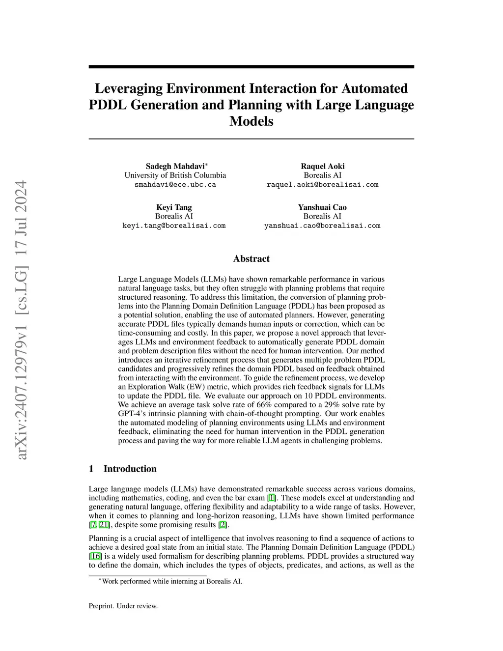Leveraging Environment Interaction for Automated PDDL Generation and