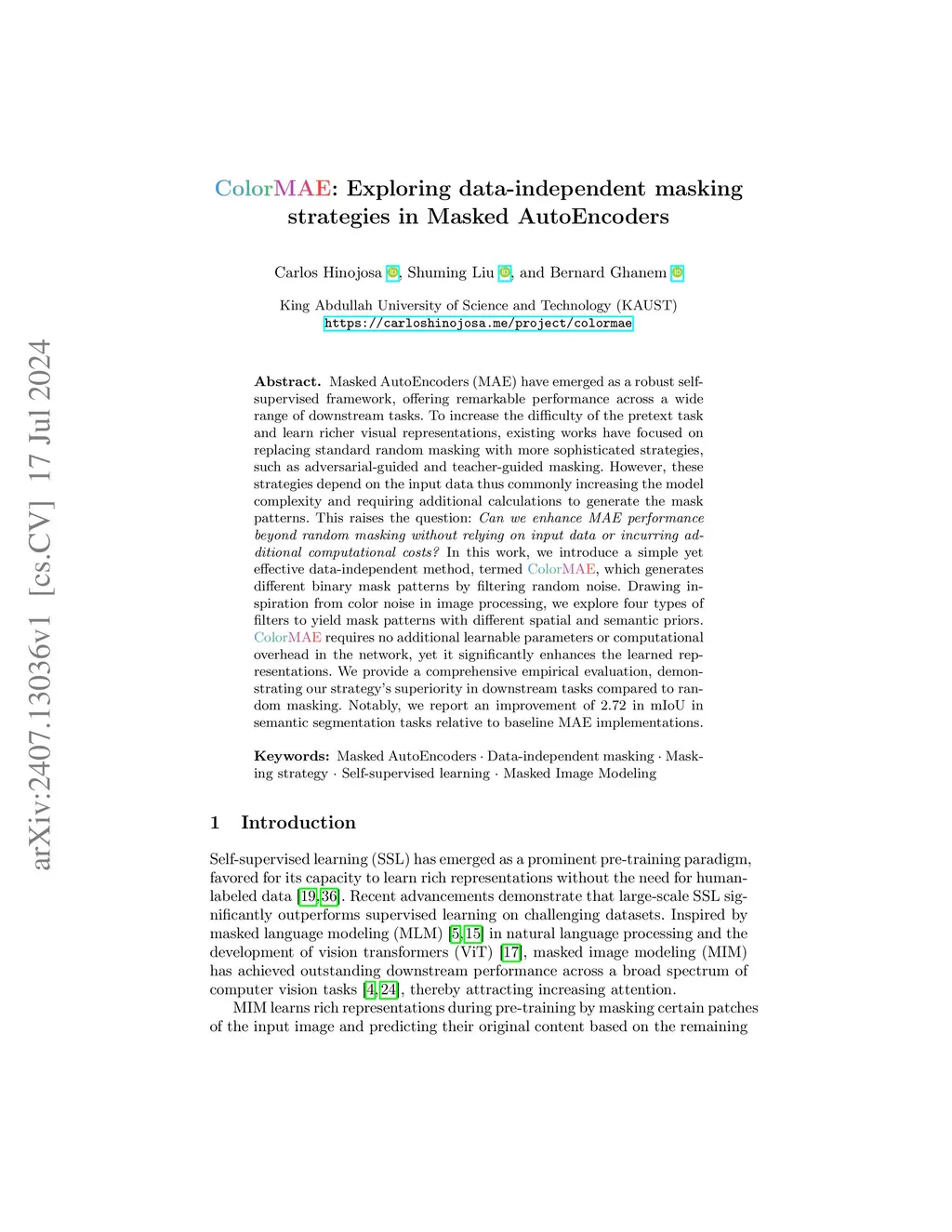 ColorMAE: Exploring data-independent masking strategies in Masked