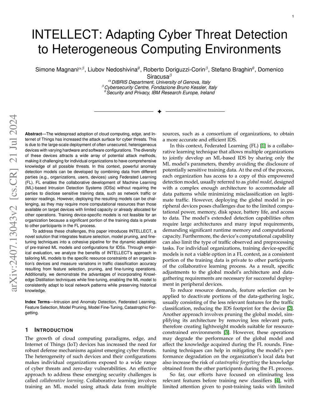 The widespread adoption of cloud computing, edge, and IoT has increased the attack surface for cyber threats. This is due to the large-scale deployment of often unsecured, heterogeneous devices with varying hardware and software configurations. The diversity of these devices attracts a wide array of potential attack methods, making it challenging for individual organizations to have comprehensive knowledge of all possible threats. In this context, powerful anomaly detection models can be developed by combining data from different parties using Federated Learning. FL enables the collaborative development of ML-based IDSs without requiring the parties to disclose sensitive training data, such as network traffic or sensor readings. However, deploying the resulting models can be challenging, as they may require more computational resources than those available on target devices with limited capacity or already allocated for other operations. Training device-specific models is not feasible for an organization because a significant portion of the training data is private to other participants in the FL process. To address these challenges, this paper introduces INTELLECT, a novel solution that integrates feature selection, model pruning, and fine-tuning techniques into a cohesive pipeline for the dynamic adaptation of pre-trained ML models and configurations for IDSs. Through empirical evaluation, we analyze the benefits of INTELLECT's approach in tailoring ML models to the specific resource constraints of an organization's devices and measure variations in traffic classification accuracy resulting from feature selection, pruning, and fine-tuning operations. Additionally, we demonstrate the advantages of incorporating knowledge distillation techniques while fine-tuning, enabling the ML model to consistently adapt to local network patterns while preserving historical knowledge.