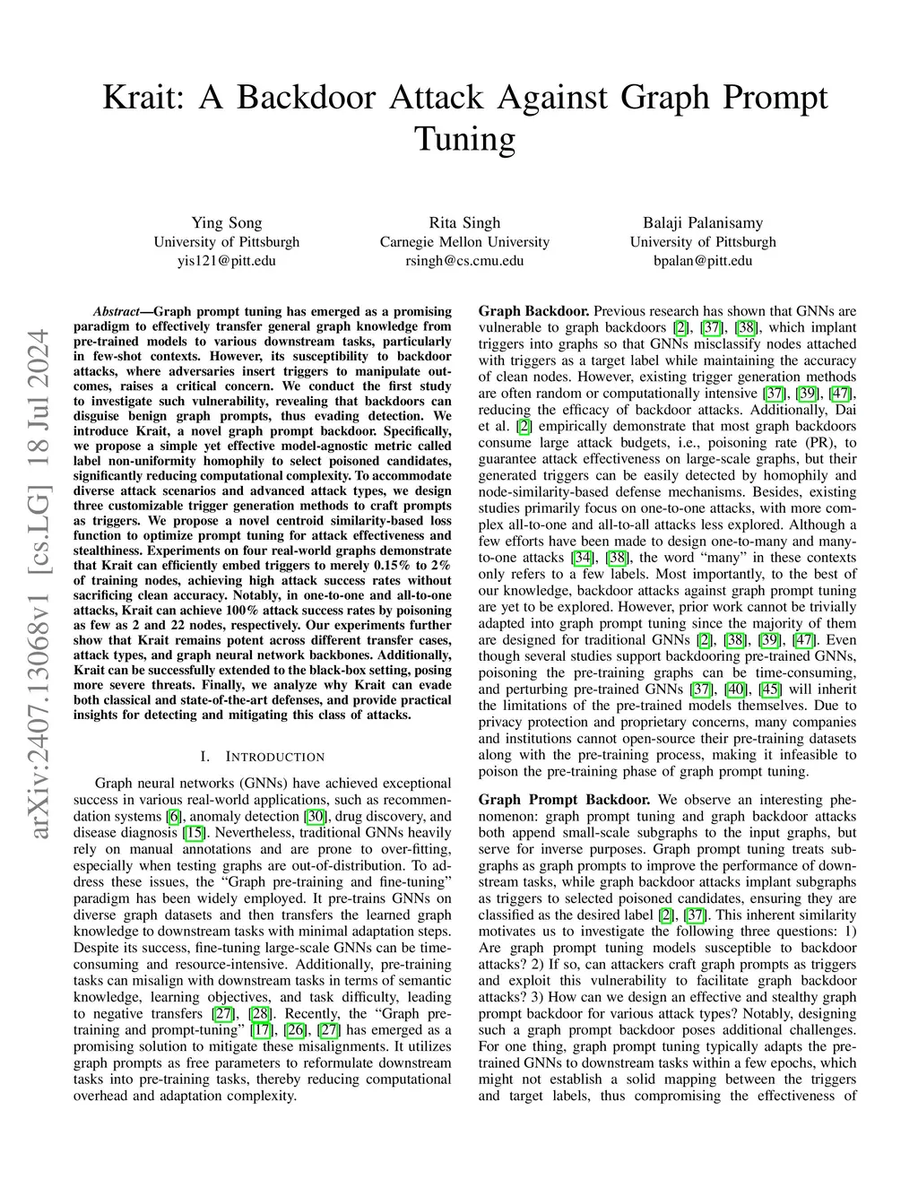 Krait: A Backdoor Attack Against Graph Prompt Tuning