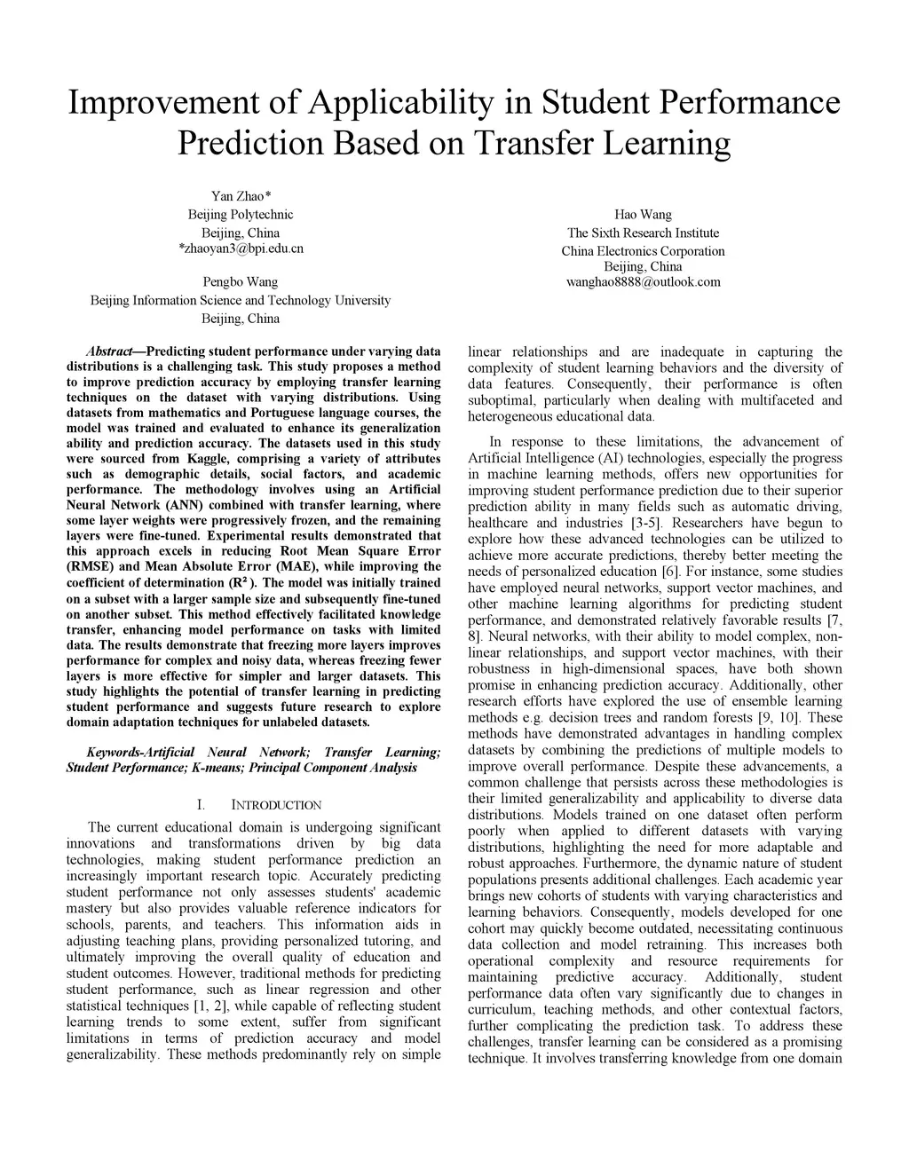 Predicting student performance under varying data distributions is a challenging task. This study proposes a method to improve prediction accuracy by employing transfer learning techniques on the dataset with varying distributions. Using datasets from mathematics and Portuguese language courses, the model was trained and evaluated to enhance its generalization ability and prediction accuracy. The datasets used in this study were sourced from Kaggle, comprising a variety of attributes such as demographic details, social factors, and academic performance. The methodology involves using an Artificial Neural Network (ANN) combined with transfer learning, where some layer weights were progressively frozen, and the remaining layers were fine-tuned. Experimental results demonstrated that this approach excels in reducing Root Mean Square Error (RMSE) and Mean Absolute Error (MAE), while improving the coefficient of determination (R2). The model was initially trained on a subset with a larger sample size and subsequently fine-tuned on another subset. This method effectively facilitated knowledge transfer, enhancing model performance on tasks with limited data. The results demonstrate that freezing more layers improves performance for complex and noisy data, whereas freezing fewer layers is more effective for simpler and larger datasets. This study highlights the potential of transfer learning in predicting student performance and suggests future research to explore domain adaptation techniques for unlabeled datasets.