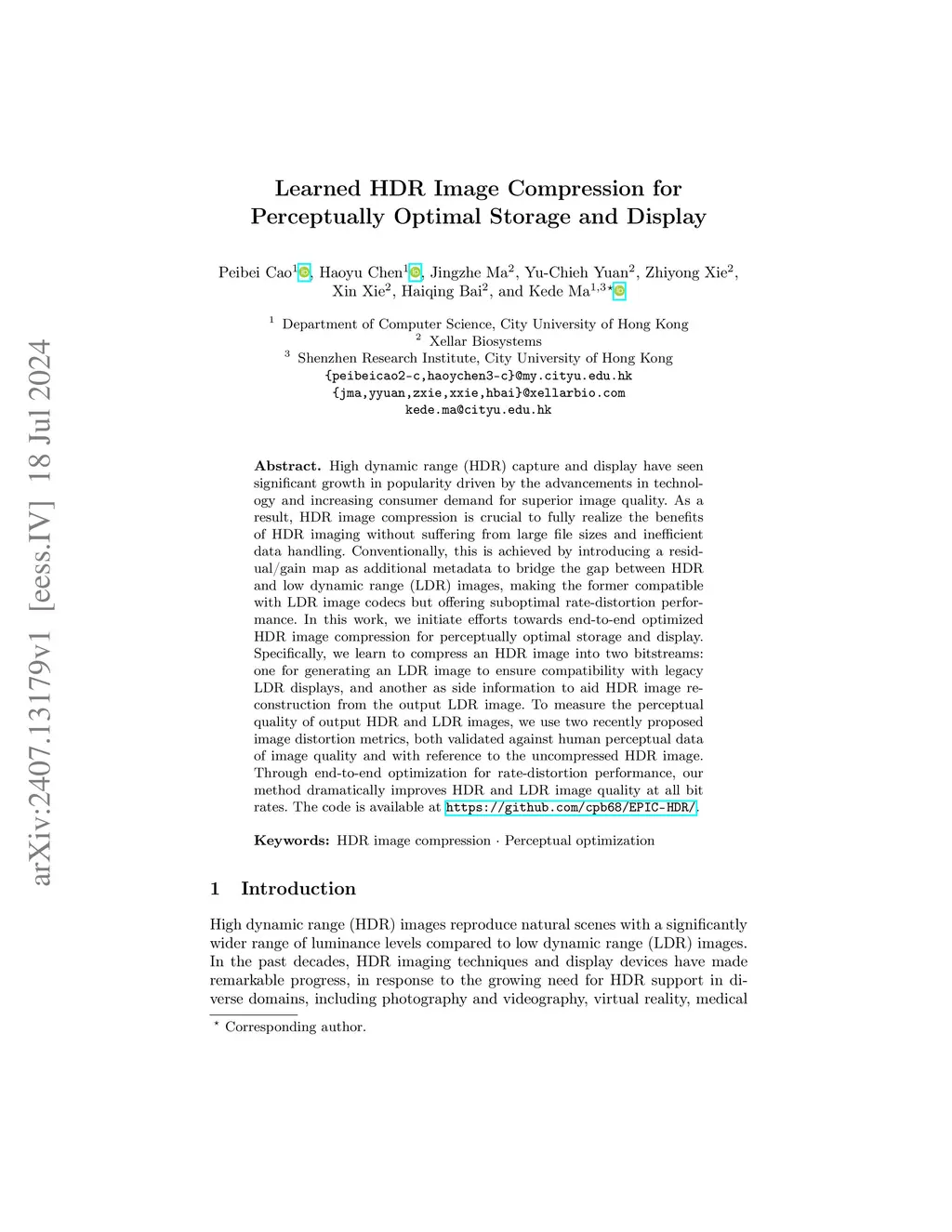 Learned HDR Image Compression for Perceptually Optimal Storage and