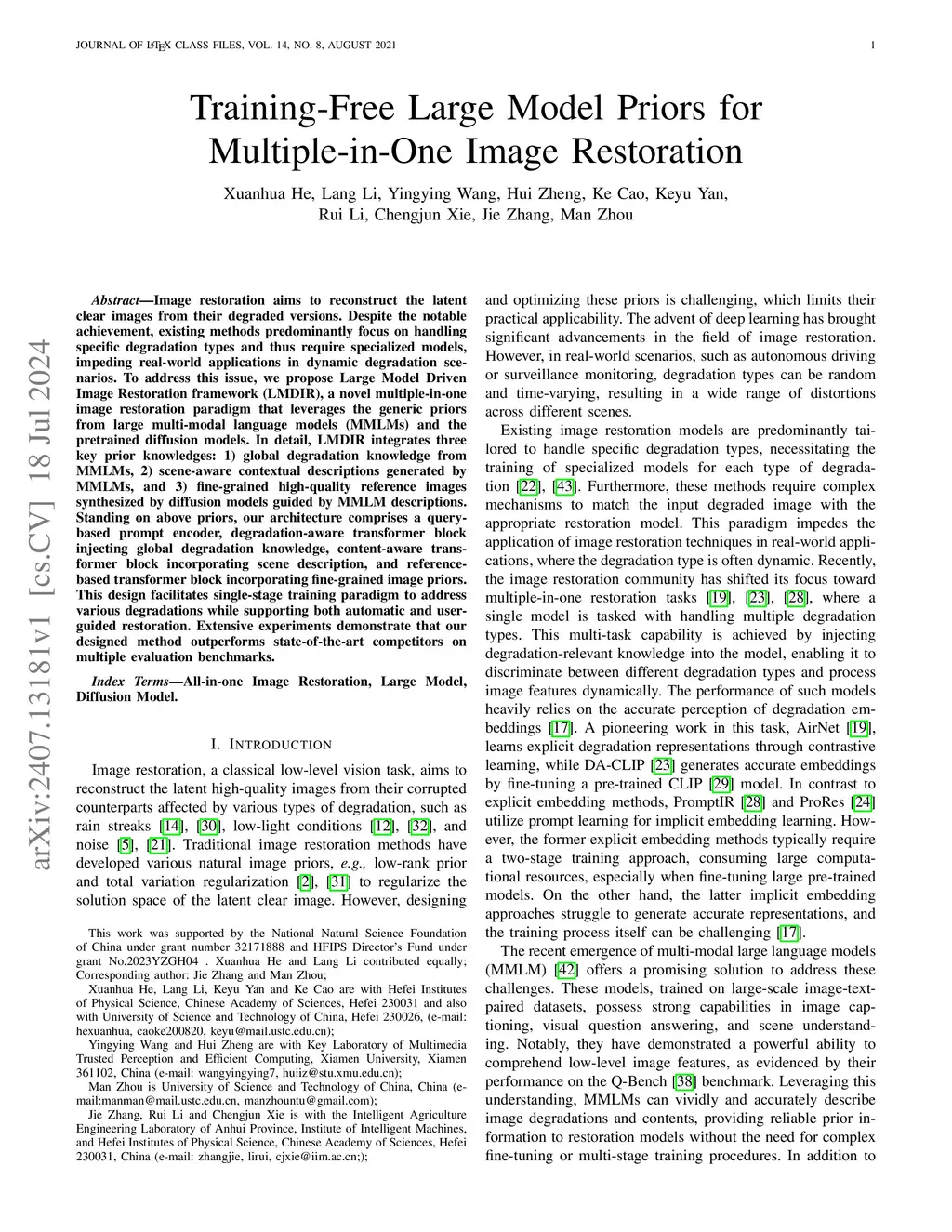Training-Free Large Model Priors for Multiple-in-One Image Restoration