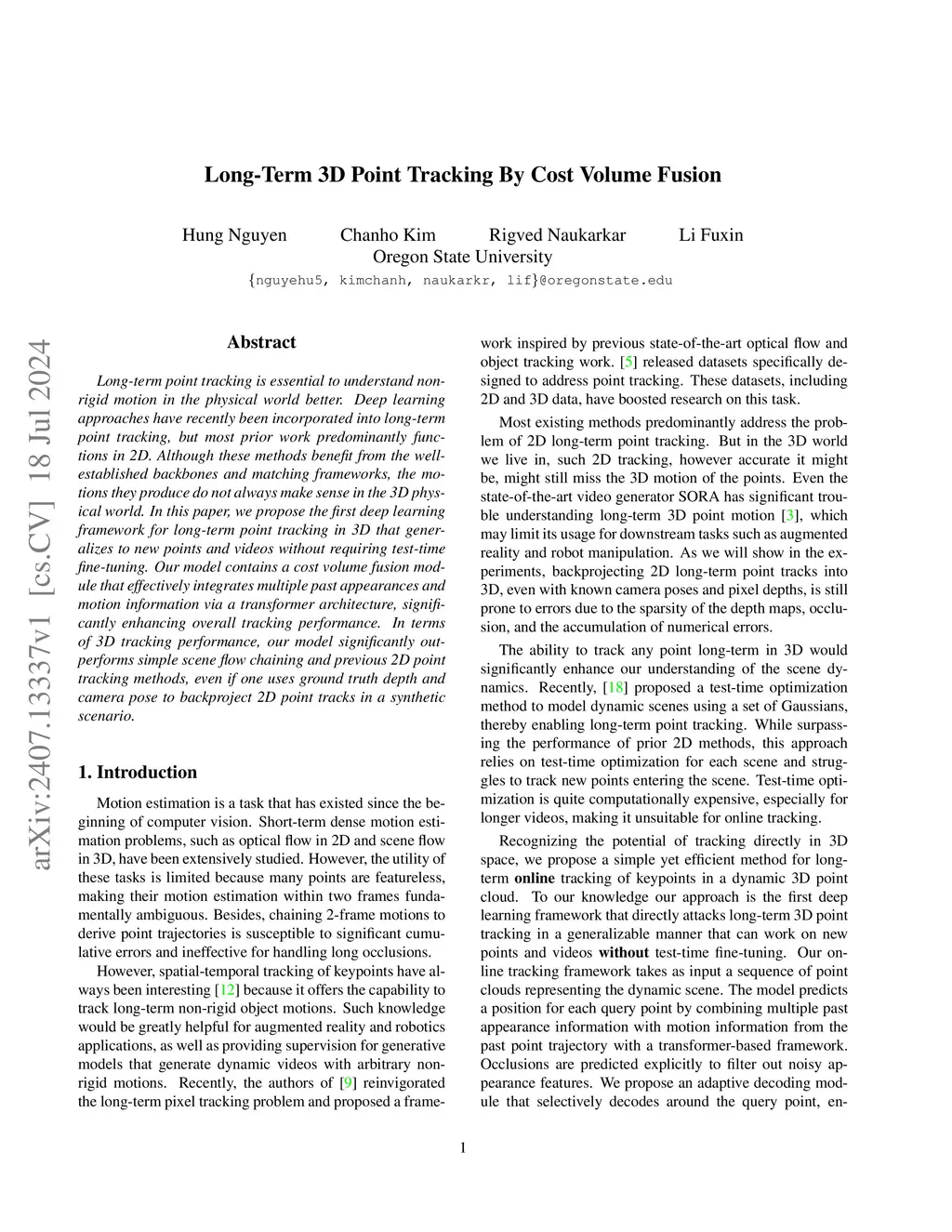 Long-Term 3D Point Tracking By Cost Volume Fusion