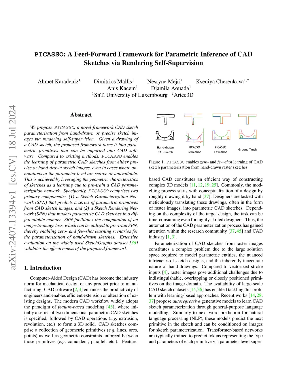 PICASSO: A Feed-Forward Framework for Parametric Inference of CAD