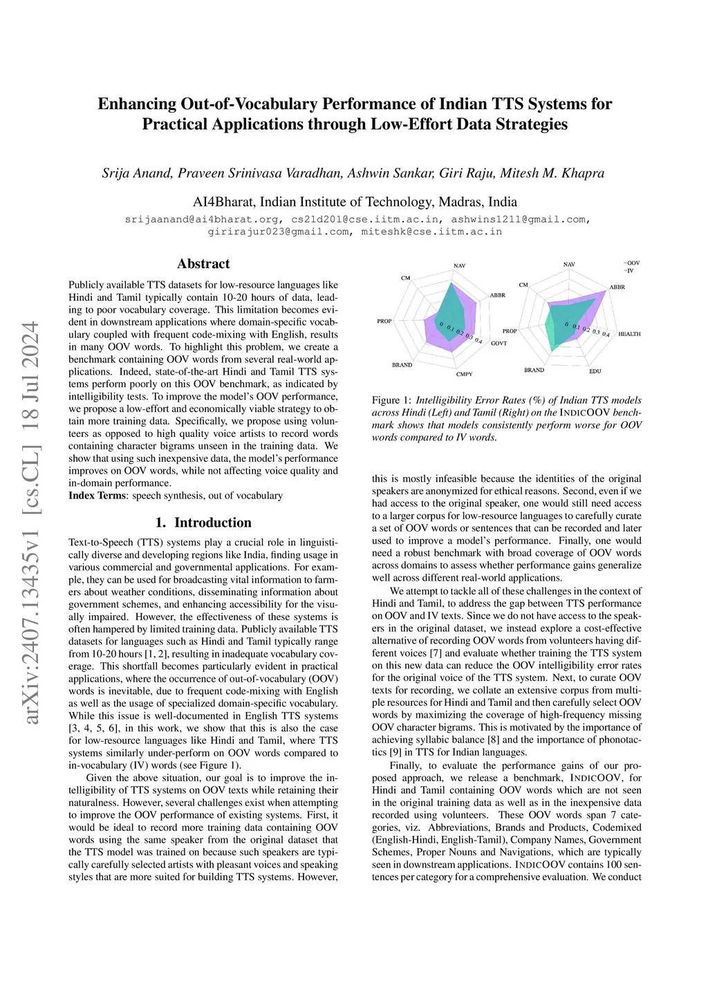 Publicly available TTS datasets for low-resource languages like Hindi and Tamil typically contain 10-20 hours of data, leading to poor vocabulary coverage. This limitation becomes evident in downstream applications where domain-specific vocabulary coupled with frequent code-mixing with English, results in many OOV words. To highlight this problem, we create a benchmark containing OOV words from several real-world applications. Indeed, state-of-the-art Hindi and Tamil TTS systems perform poorly on this OOV benchmark, as indicated by intelligibility tests. To improve the model's OOV performance, we propose a low-effort and economically viable strategy to obtain more training data. Specifically, we propose using volunteers as opposed to high quality voice artists to record words containing character bigrams unseen in the training data. We show that using such inexpensive data, the model's performance improves on OOV words, while not affecting voice quality and in-domain performance.