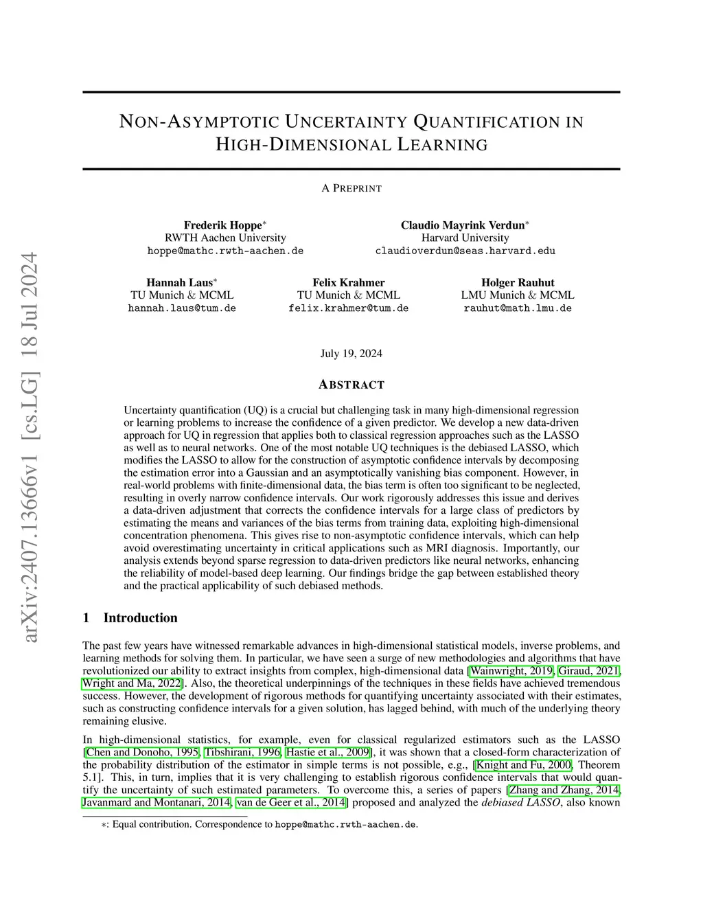 Non-Asymptotic Uncertainty Quantification in High-Dimensional Learning