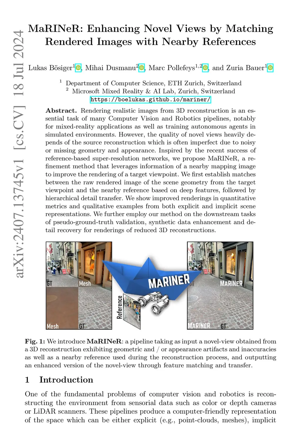 Rendering realistic images from 3D reconstruction is an essential task of many Computer Vision and Robotics pipelines, notably for mixed-reality applications as well as training autonomous agents in simulated environments. However, the quality of novel views heavily depends of the source reconstruction which is often imperfect due to noisy or missing geometry and appearance. Inspired by the recent success of reference-based super-resolution networks, we propose MaRINeR, a refinement method that leverages information of a nearby mapping image to improve the rendering of a target viewpoint. We first establish matches between the raw rendered image of the scene geometry from the target viewpoint and the nearby reference based on deep features, followed by hierarchical detail transfer. We show improved renderings in quantitative metrics and qualitative examples from both explicit and implicit scene representations. We further employ our method on the downstream tasks of pseudo-ground-truth validation, synthetic data enhancement and detail recovery for renderings of reduced 3D reconstructions.
