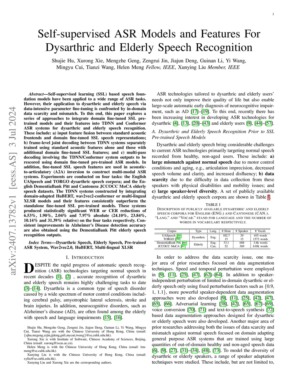 Self-supervised ASR Models and Features For Dysarthric and Elderly