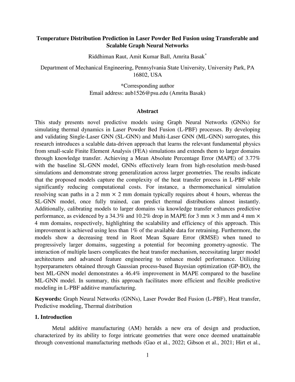 Temperature Distribution Prediction in Laser Powder Bed Fusion using