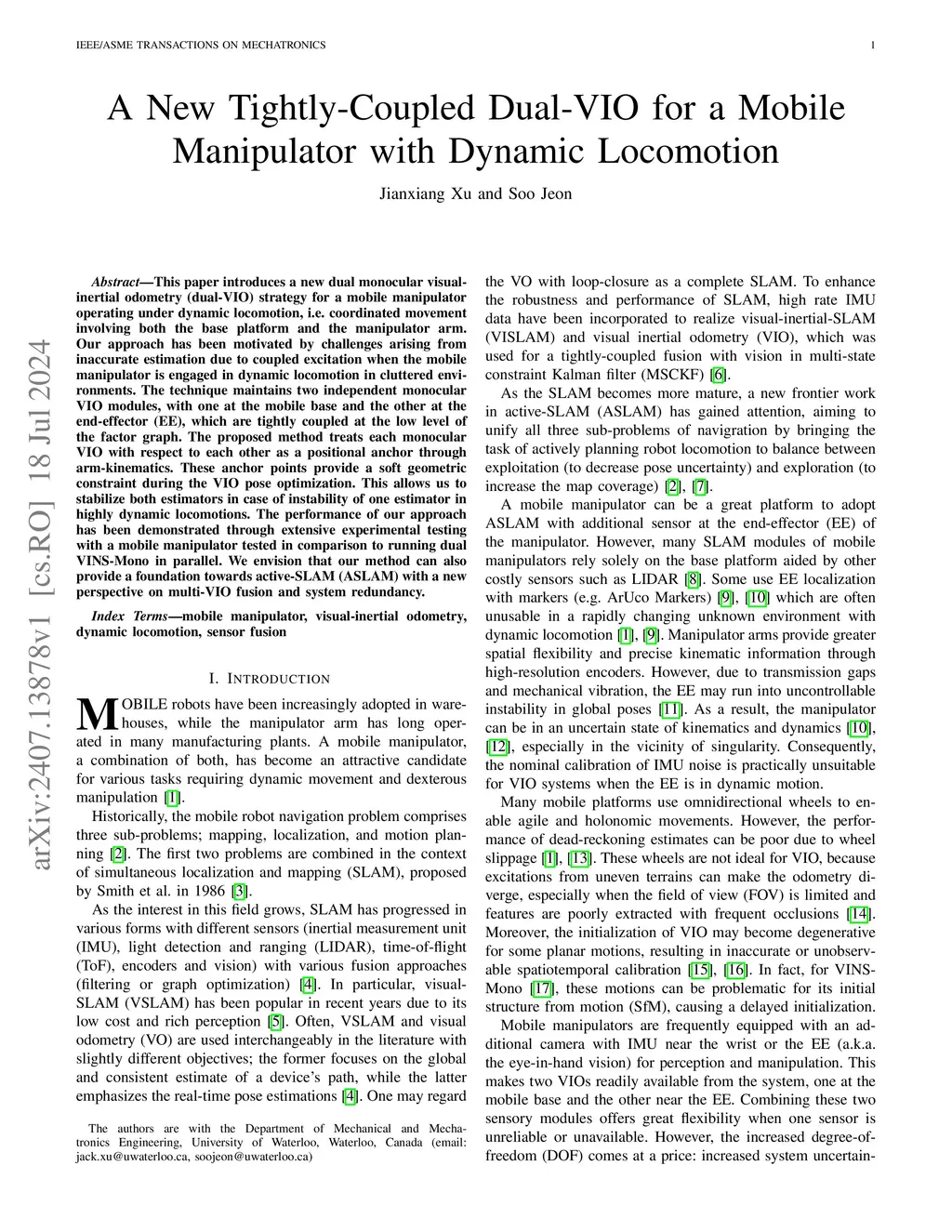 A New Tightly-Coupled Dual-VIO for a Mobile Manipulator With Dynamic