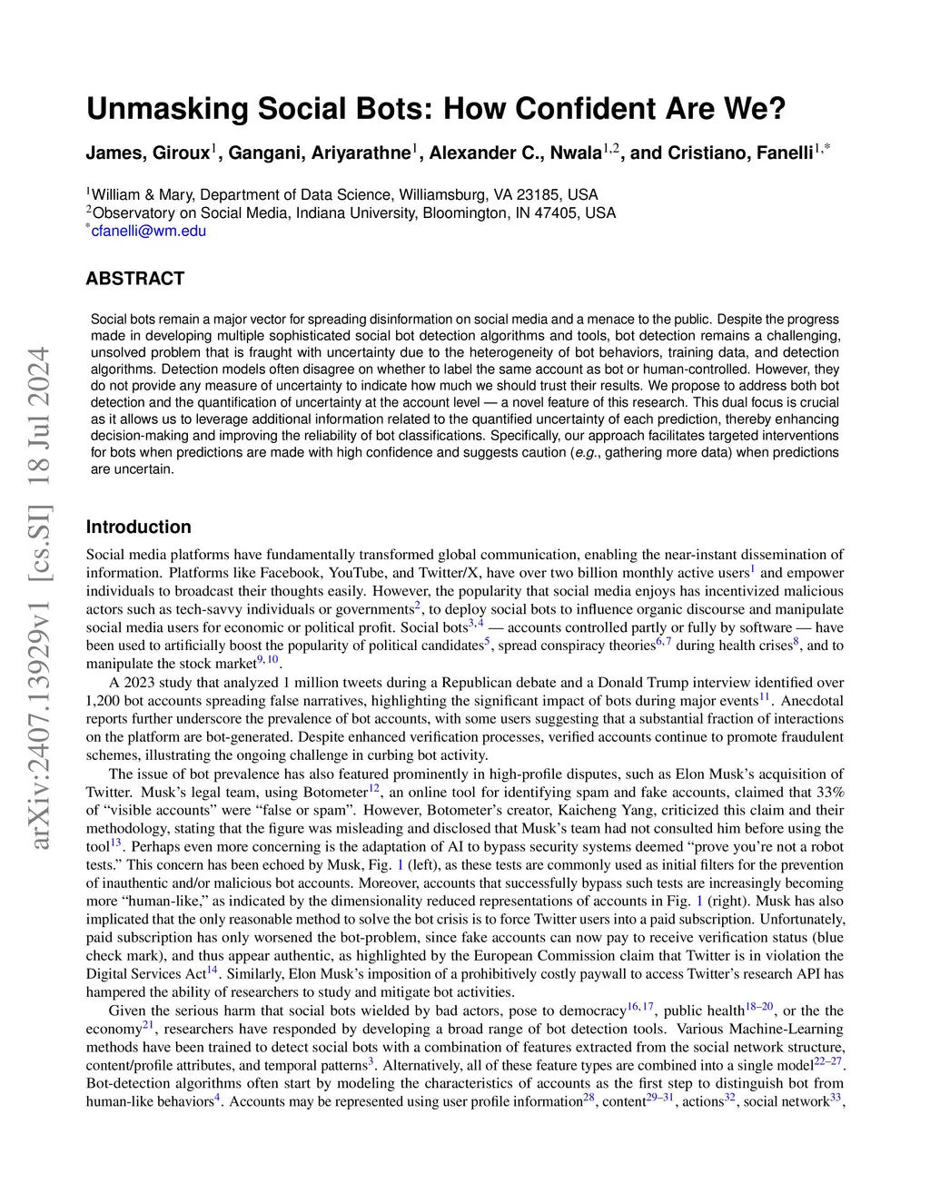 Social bots remain a major vector for spreading disinformation on social media and a menace to the public. Despite the progress made in developing multiple sophisticated social bot detection algorithms and tools, bot detection remains a challenging, unsolved problem that is fraught with uncertainty due to the heterogeneity of bot behaviors, training data, and detection algorithms. Detection models often disagree on whether to label the same account as bot or human-controlled. However, they do not provide any measure of uncertainty to indicate how much we should trust their results. We propose to address both bot detection and the quantification of uncertainty at the account level - a novel feature of this research. This dual focus is crucial as it allows us to leverage additional information related to the quantified uncertainty of each prediction, thereby enhancing decision-making and improving the reliability of bot classifications. Specifically, our approach facilitates targeted interventions for bots when predictions are made with high confidence and suggests caution (e.g., gathering more data) when predictions are uncertain.