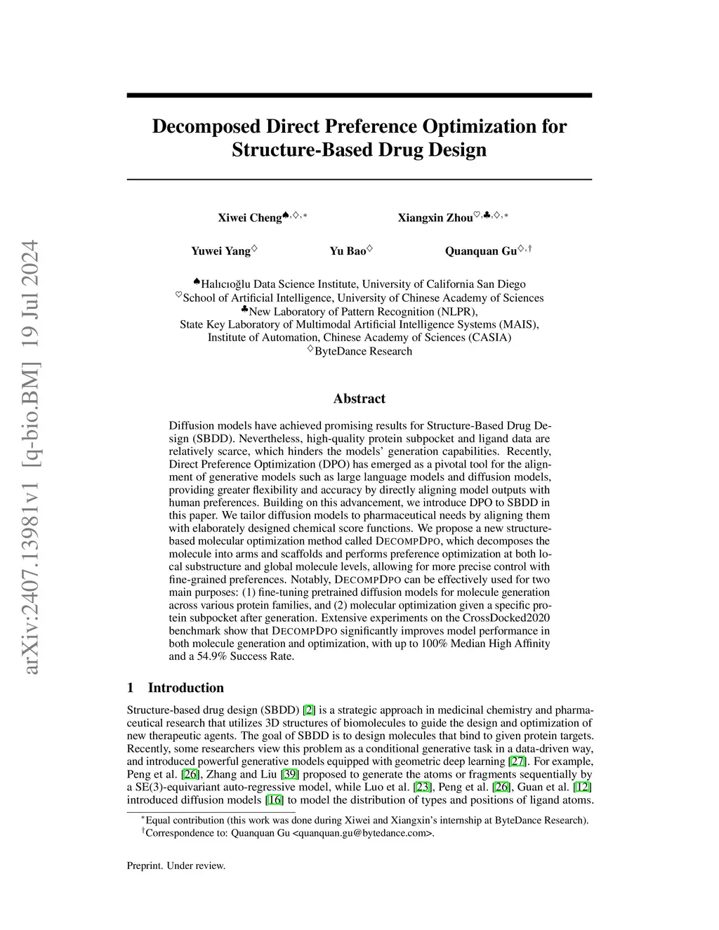 Decomposed Direct Preference Optimization for Structure-Based Drug Design