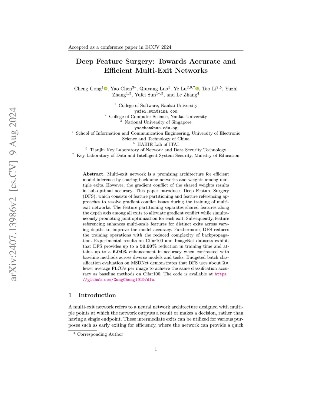 Deep Feature Surgery: Towards Accurate and Efficient Multi-Exit Networks