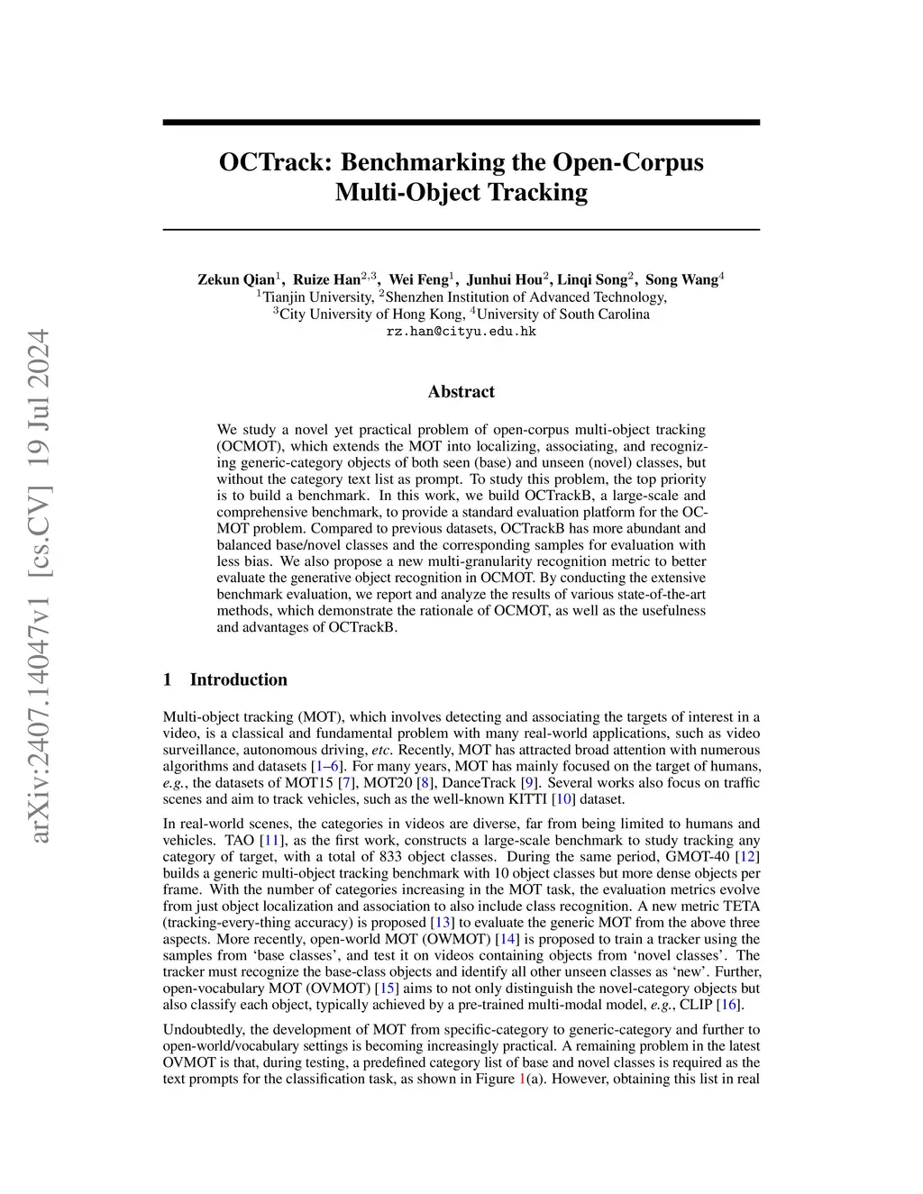 OCTrack: Benchmarking the Open-Corpus Multi-Object Tracking