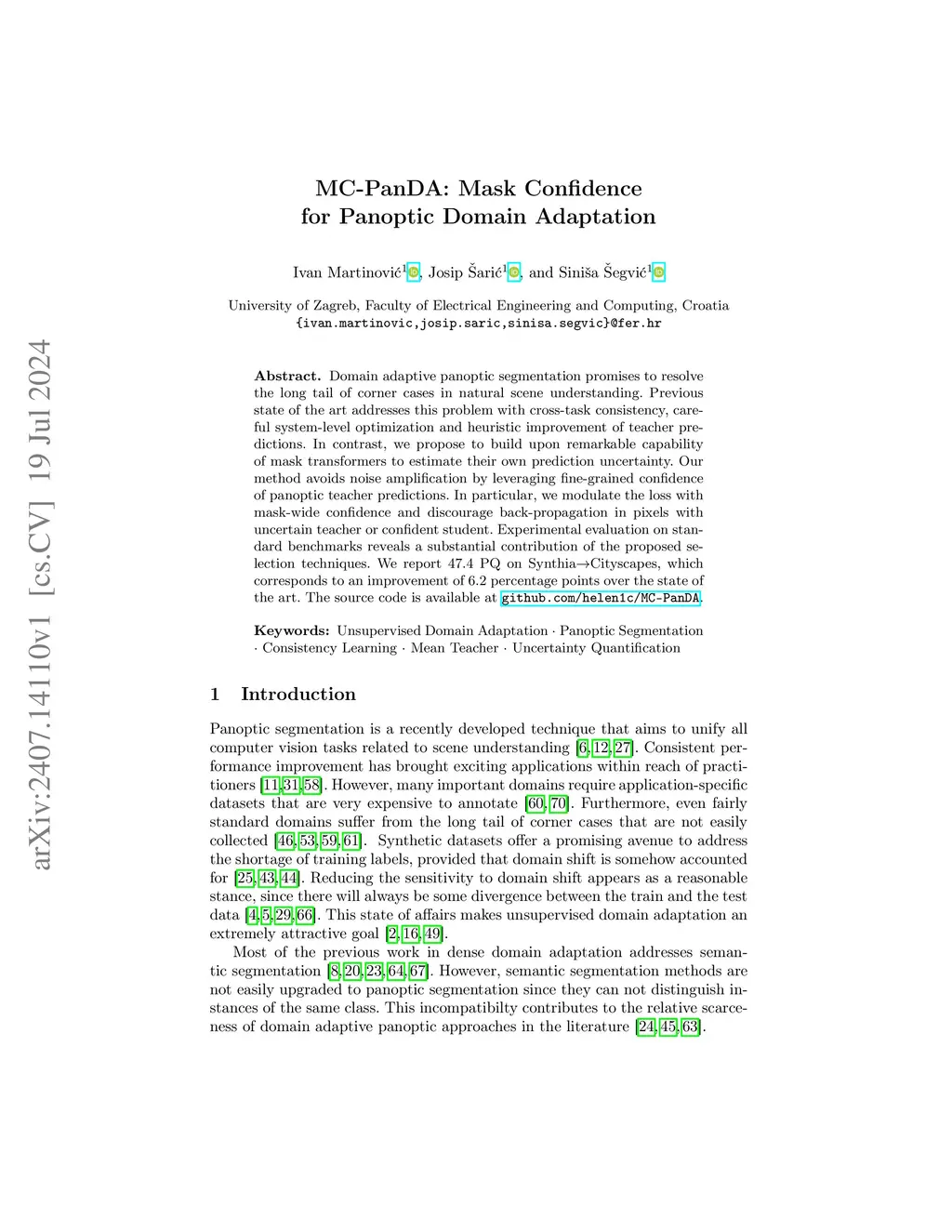MC-PanDA: Mask Confidence for Panoptic Domain Adaptation