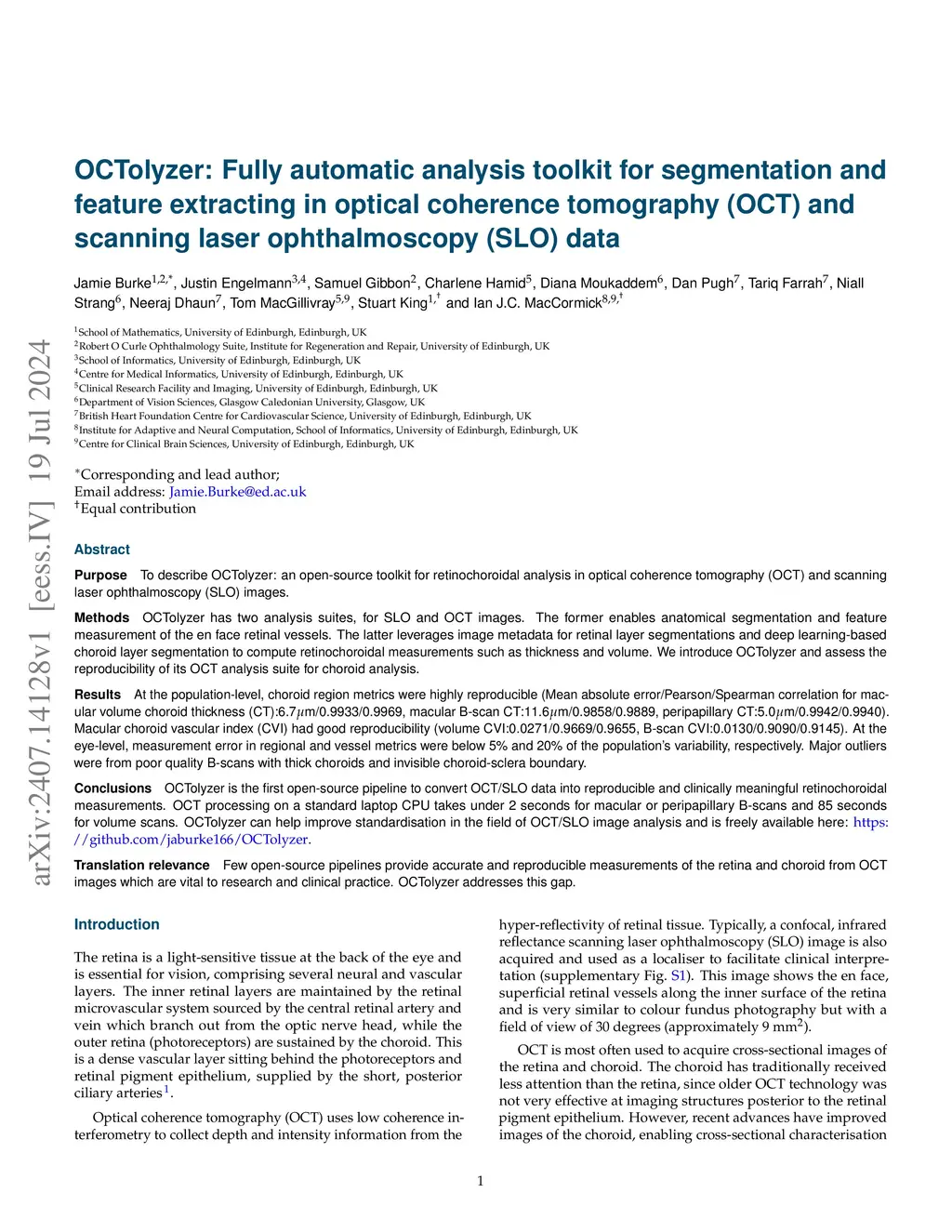 OCTolyzer: Fully automatic toolkit for segmentation and feature extracting in optical coherence tomography and scanning laser ophthalmoscopy data