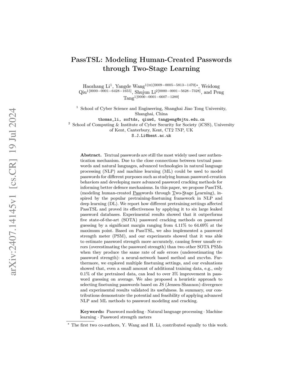 PassTSL: Modeling Human-Created Passwords through Two-Stage Learning