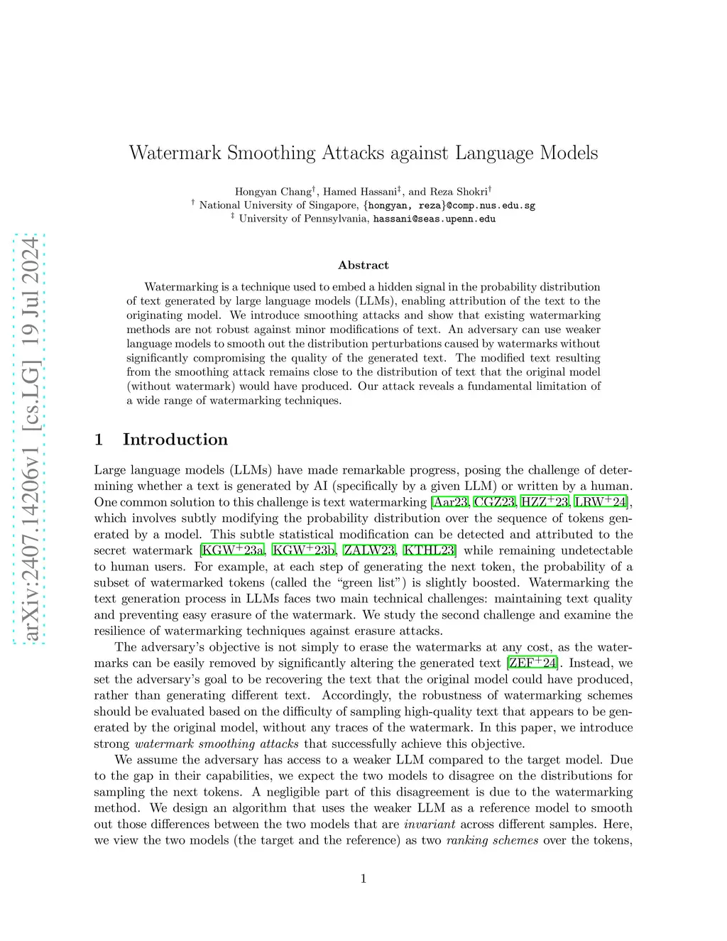 Watermarking is a key technique for detecting AI-generated text. In this work, we study its vulnerabilities and introduce the Smoothing Attack, a novel watermark removal method. By leveraging the relationship between the model's confidence and watermark detectability, our attack selectively smoothes the watermarked content, erasing watermark traces while preserving text quality. We validate our attack on open-source models ranging from B to B parameters on different watermarks, demonstrating its effectiveness. Our findings expose critical weaknesses in existing watermarking schemes and highlight the need for stronger defenses.