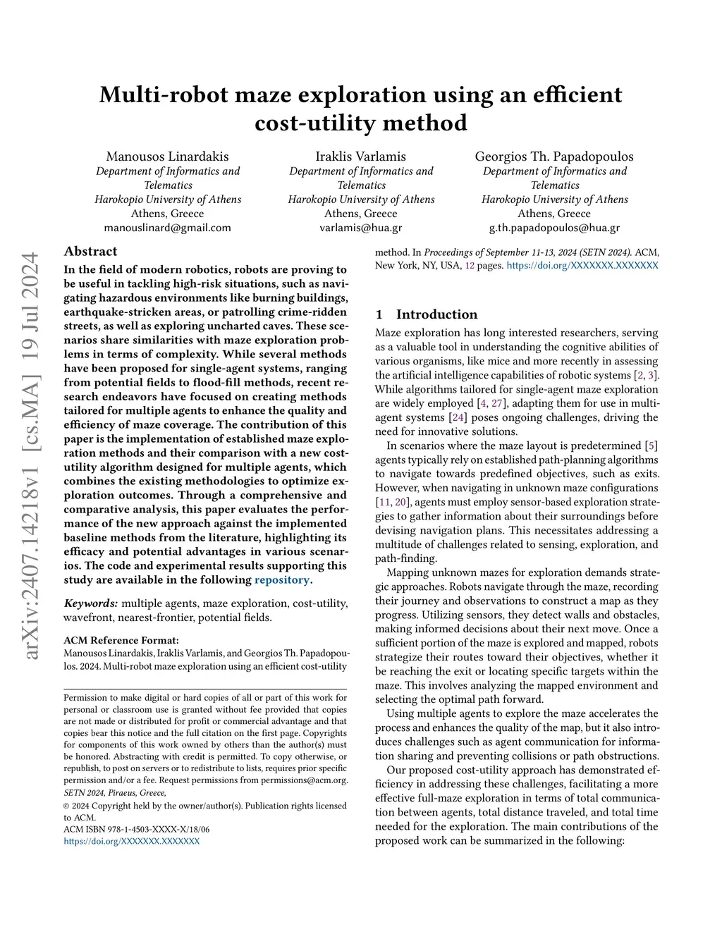 In the field of modern robotics, robots are proving to be useful in tackling high-risk situations, such as navigating hazardous environments like burning buildings, earthquake-stricken areas, or patrolling crime-ridden streets, as well as exploring uncharted caves. These scenarios share similarities with maze exploration problems in terms of complexity. While several methods have been proposed for single-agent systems, ranging from potential fields to flood-fill methods, recent research endeavors have focused on creating methods tailored for multiple agents to enhance the quality and efficiency of maze coverage. The contribution of this paper is the implementation of established maze exploration methods and their comparison with a new cost-utility algorithm designed for multiple agents, which combines the existing methodologies to optimize exploration outcomes. Through a comprehensive and comparative analysis, this paper evaluates the performance of the new approach against the implemented baseline methods from the literature, highlighting its efficacy and potential advantages in various scenarios. The code and experimental results supporting this study are available in the following repository (https://github.com/manouslinard/multiagent-exploration/).