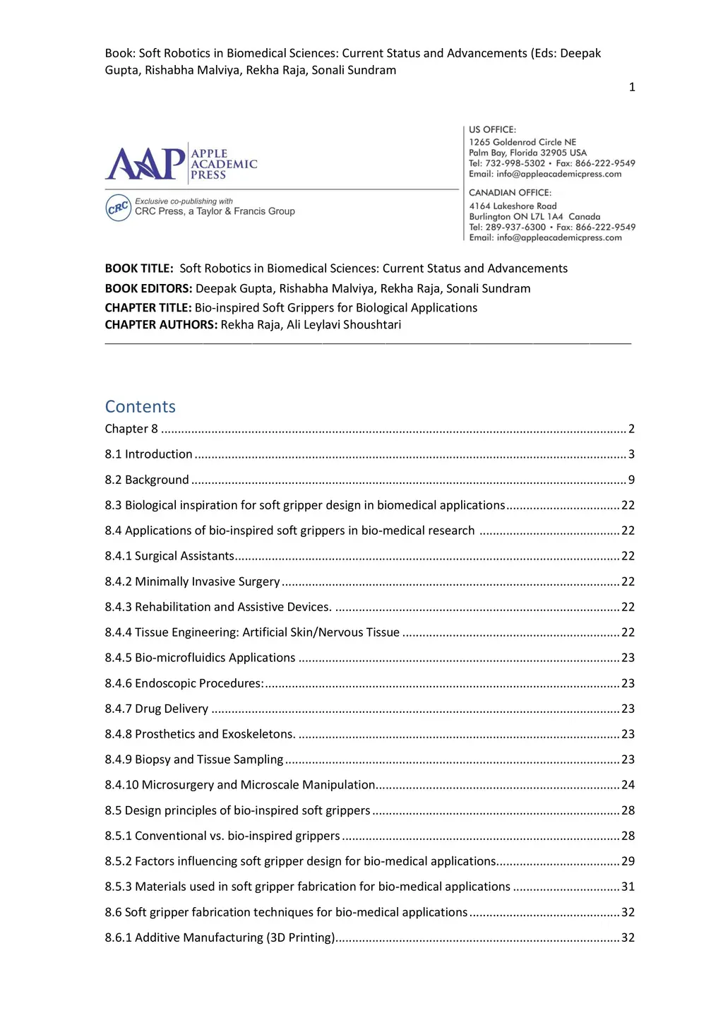 The field of bio-inspired soft grippers has emerged as a transformative area of research with profound implications for biomedical applications. This book chapter provides a comprehensive overview of the principles, developments, challenges, and prospects of soft grippers that draw inspiration from biological systems. Bio-inspired soft grippers have gained prominence due to their unique characteristics, including compliance, adaptability, and biocompatibility. They have revolutionized the way we approach biomedical tasks, offering safer interactions with delicate tissues and enabling complex operations that were once inconceivable with rigid tools. The chapter delves into the fundamental importance of soft grippers in biomedical contexts. It outlines their significance in surgeries, diagnostics, tissue engineering, and various medical interventions. Soft grippers have the capacity to mimic the intricate movements of biological organisms, facilitating minimally invasive procedures and enhancing patient outcomes. A historical perspective traces the evolution of soft grippers in biomedical research, highlighting key milestones and breakthroughs. From early attempts to emulate the dexterity of octopus tentacles to the latest advancements in soft lithography and biomaterials, the journey has been marked by ingenuity and collaboration across multiple disciplines. Motivations for adopting soft grippers in biomedical applications are explored, emphasizing their ability to reduce invasiveness, increase precision, and provide adaptability to complex anatomical structures. The requirements and challenges in designing grippers fit for medical contexts are outlined, encompassing biocompatibility, sterilization, control, and integration.