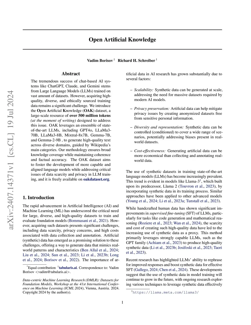 Open Artificial Knowledge