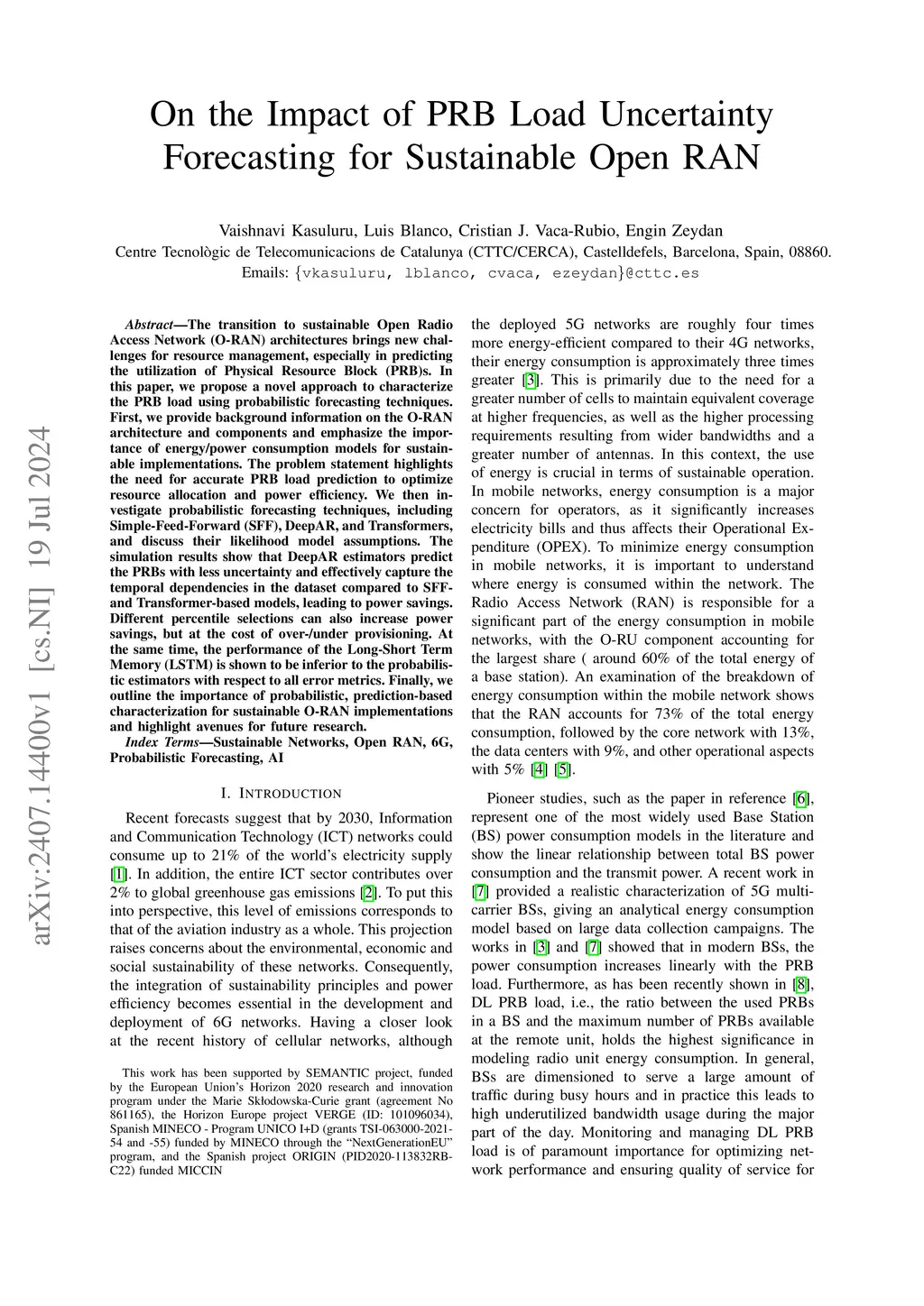 On the Impact of PRB Load Uncertainty Forecasting for Sustainable Open