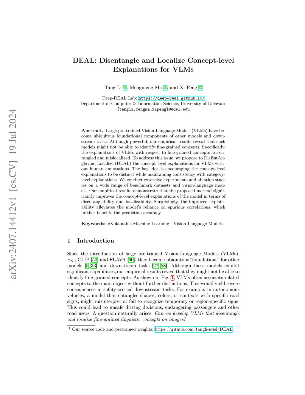 DEAL: Disentangle and Localize Concept-level Explanations for VLMs