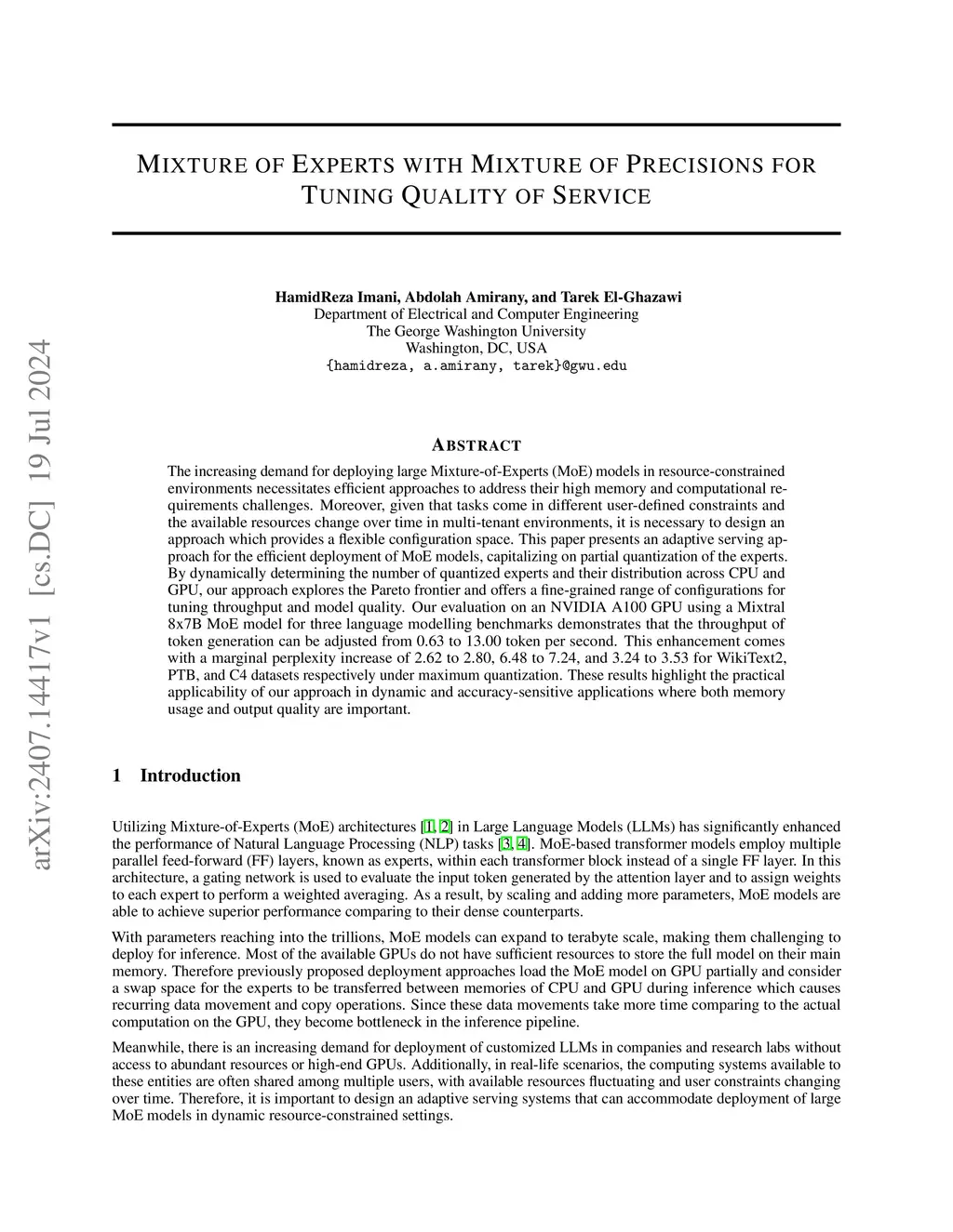 Mixture of Experts with Mixture of Precisions for Tuning Quality of
