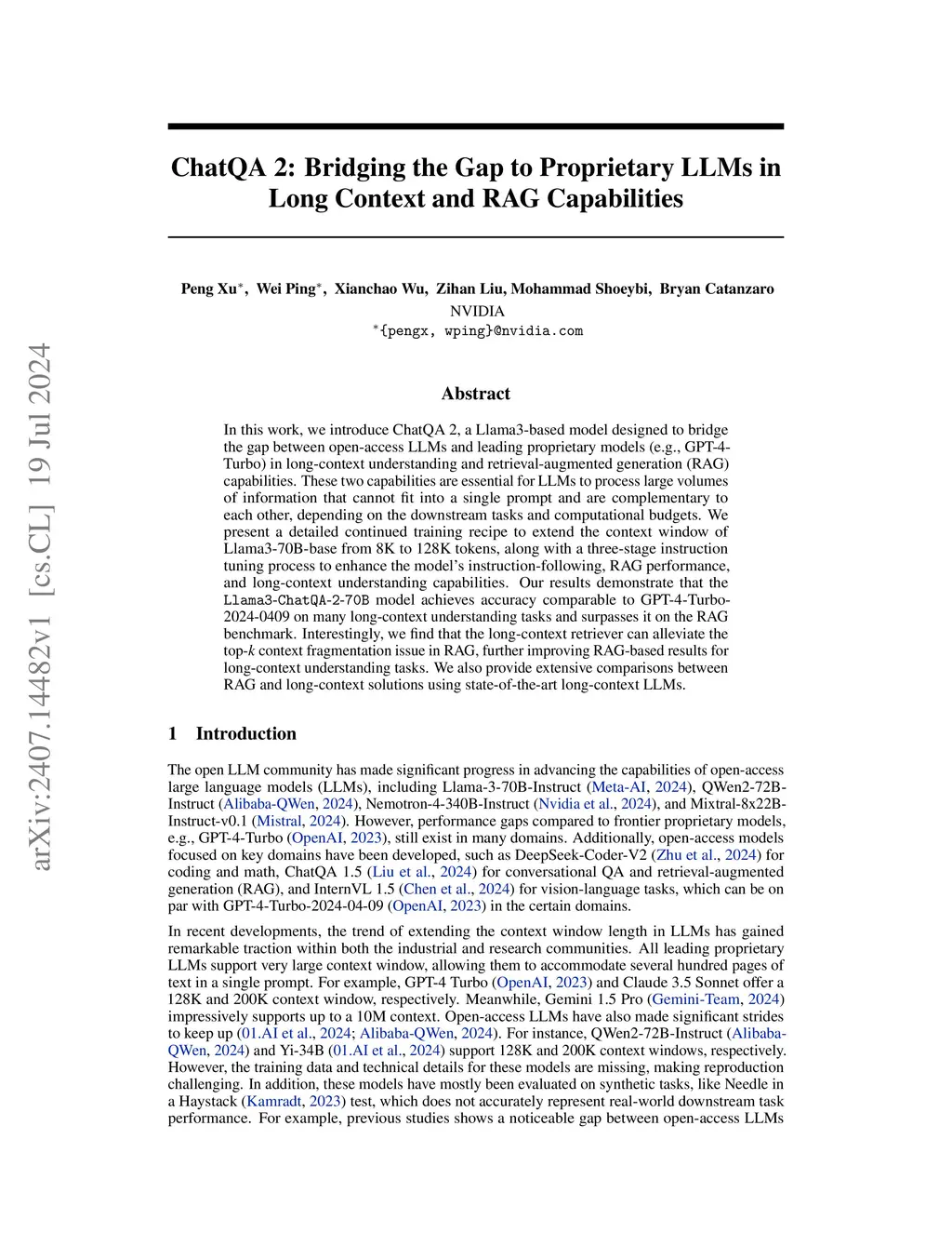 ChatQA 2: Bridging the Gap to Proprietary LLMs in Long Context and RAG Capabilities