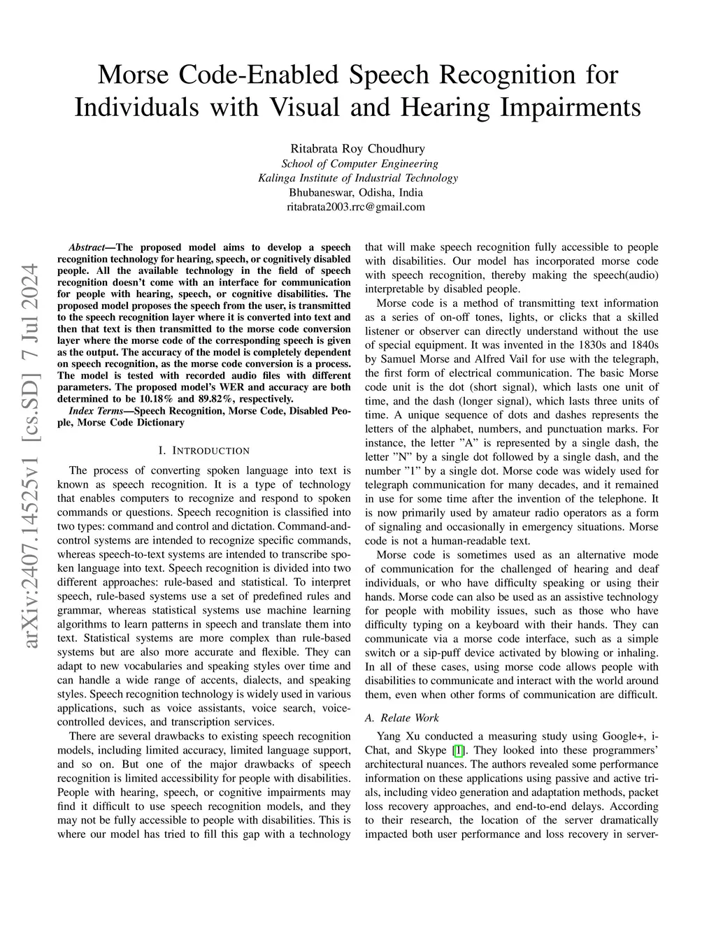 Morse Code-Enabled Speech Recognition for Individuals with Visual and
