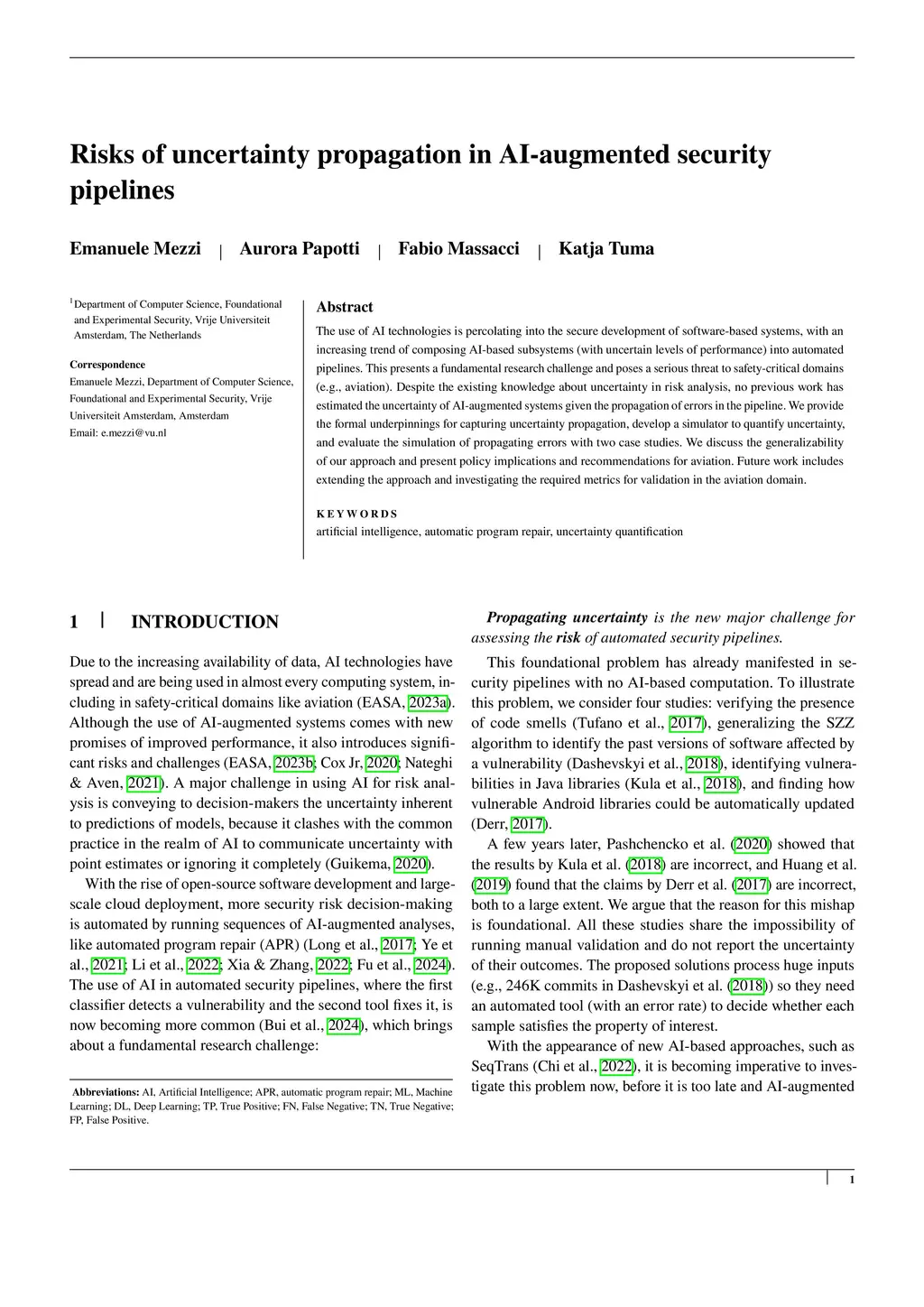 Risks of ignoring uncertainty propagation in AI-augmented security pipelines
