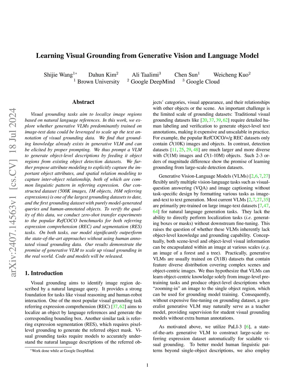 Learning Visual Grounding from Generative Vision and Language Model