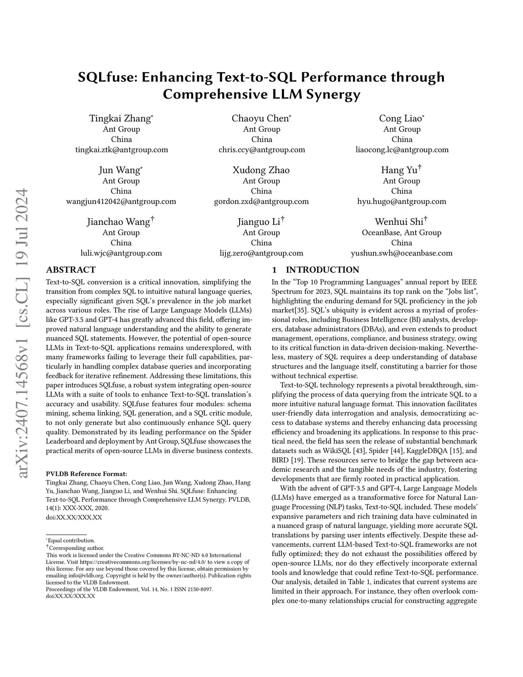 Text-to-SQL conversion is a critical innovation, simplifying the transition from complex SQL to intuitive natural language queries, especially significant given SQL's prevalence in the job market across various roles. The rise of Large Language Models (LLMs) like GPT-3.5 and GPT-4 has greatly advanced this field, offering improved natural language understanding and the ability to generate nuanced SQL statements. However, the potential of open-source LLMs in Text-to-SQL applications remains underexplored, with many frameworks failing to leverage their full capabilities, particularly in handling complex database queries and incorporating feedback for iterative refinement. Addressing these limitations, this paper introduces SQLfuse, a robust system integrating open-source LLMs with a suite of tools to enhance Text-to-SQL translation's accuracy and usability. SQLfuse features four modules: schema mining, schema linking, SQL generation, and a SQL critic module, to not only generate but also continuously enhance SQL query quality. Demonstrated by its leading performance on the Spider Leaderboard and deployment by Ant Group, SQLfuse showcases the practical merits of open-source LLMs in diverse business contexts.
