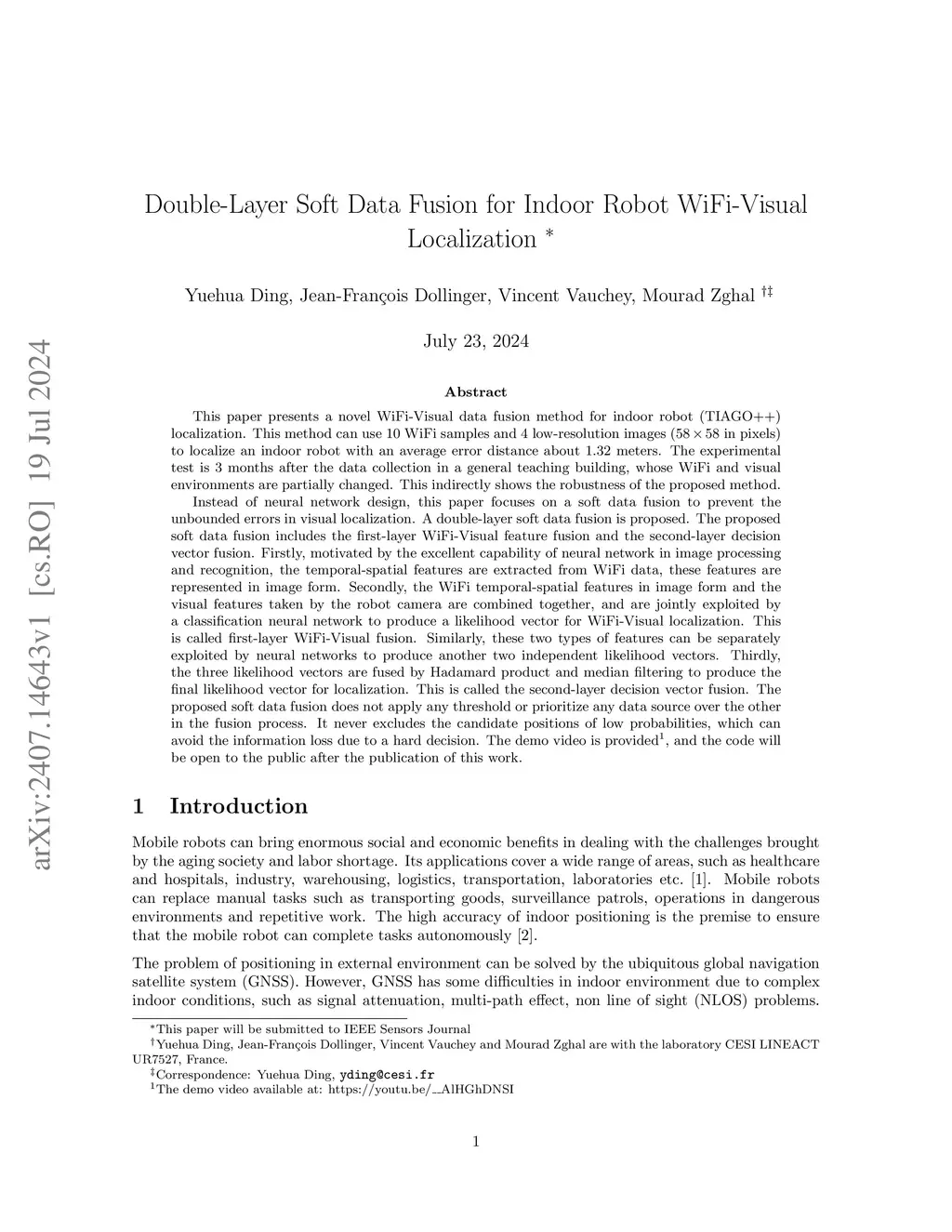 Double-Layer Soft Data Fusion for Indoor Robot WiFi-Visual Localization