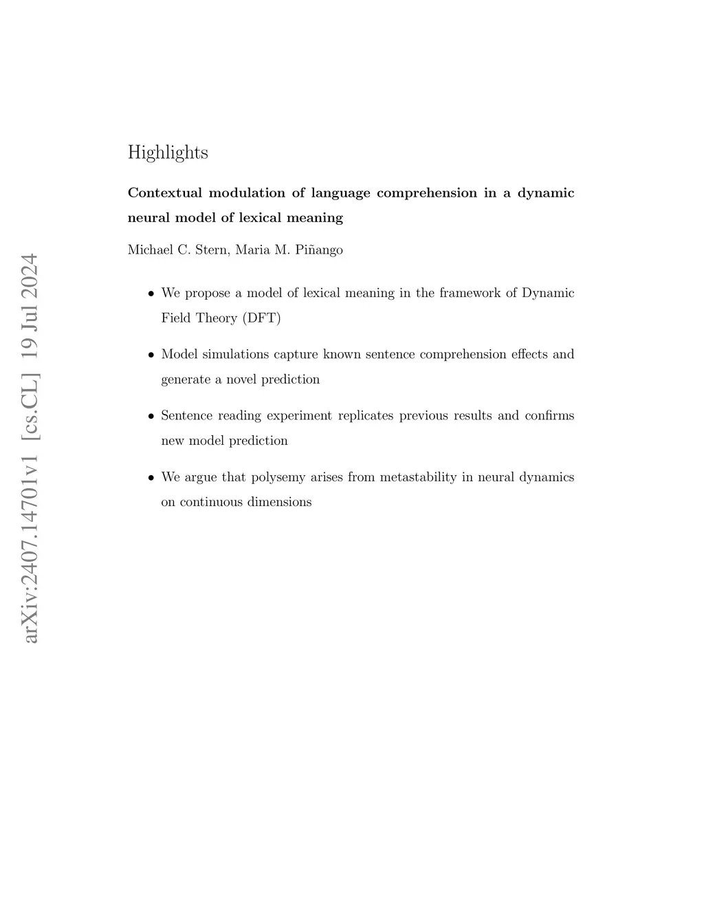 We computationally implement and experimentally test the behavioral predictions of a dynamic neural model of lexical meaning in the framework of Dynamic Field Theory. We demonstrate the architecture and behavior of the model using as a test case the English lexical item have, focusing on its polysemous use. In the model, have maps to a semantic space defined by two independently motivated continuous conceptual dimensions, connectedness and control asymmetry. The mapping is modeled as coupling between a neural node representing the lexical item and neural fields representing the conceptual dimensions. While lexical knowledge is modeled as a stable coupling pattern, real-time lexical meaning retrieval is modeled as the motion of neural activation patterns between transiently stable states corresponding to semantic interpretations or readings. Model simulations capture two previously reported empirical observations: (1) contextual modulation of lexical semantic interpretation, and (2) individual variation in the magnitude of this modulation. Simulations also generate a novel prediction that the by-trial relationship between sentence reading time and acceptability should be contextually modulated. An experiment combining self-paced reading and acceptability judgments replicates previous results and partially bears out the model's novel prediction. Altogether, results support a novel perspective on lexical polysemy: that the many related meanings of a word are not categorically distinct representations; rather, they are transiently stable neural activation states that arise from the nonlinear dynamics of neural populations governing interpretation on continuous semantic dimensions. Our model offers important advantages over related models in the dynamical systems framework, as well as models based on Bayesian inference.