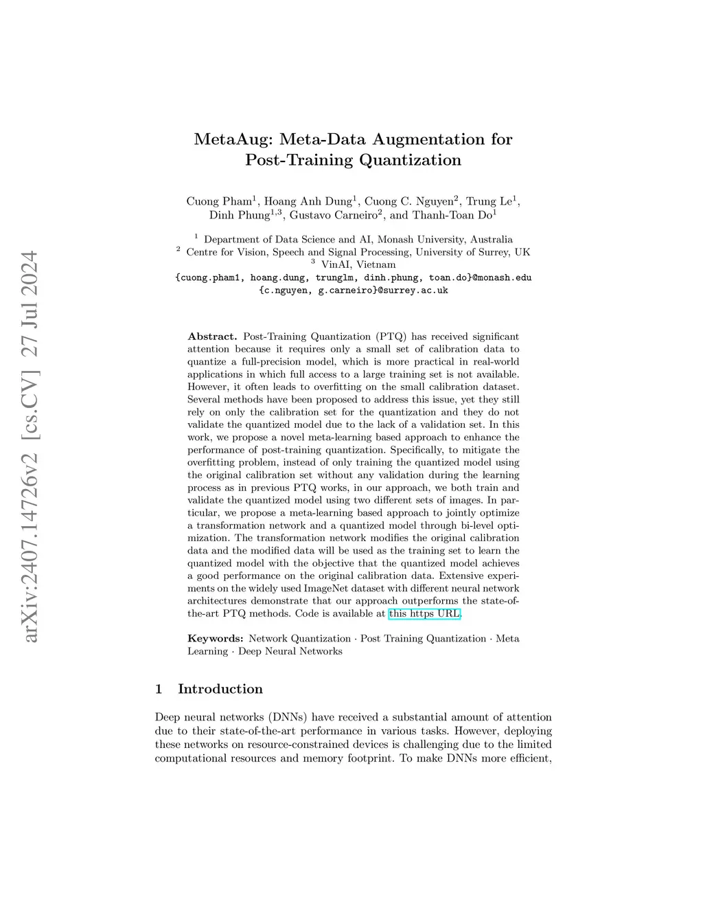 MetaAug: Meta-Data Augmentation for Post-Training Quantization
