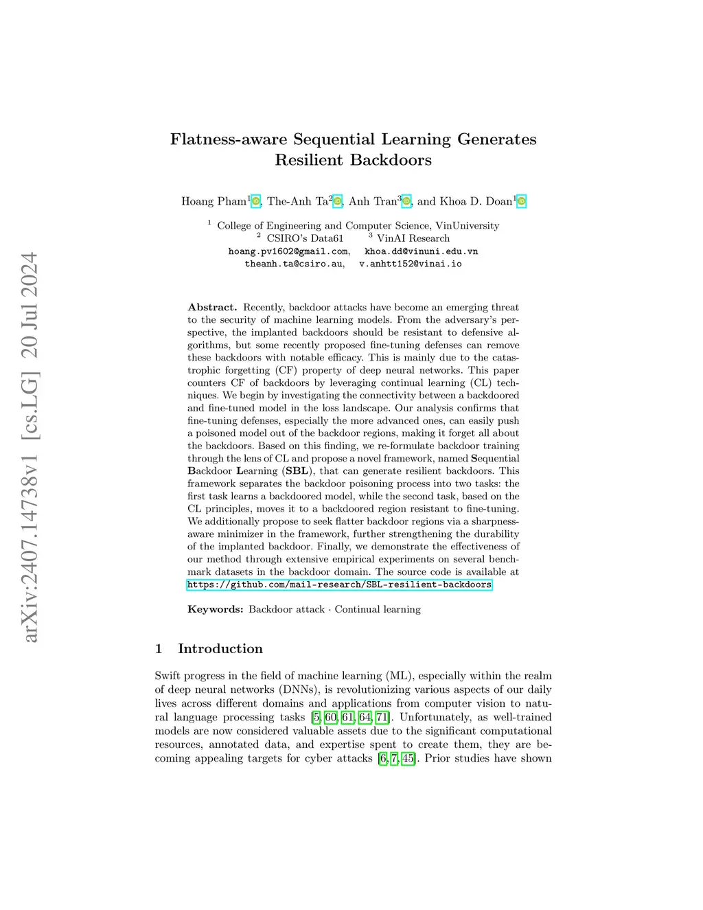 Flatness-aware Sequential Learning Generates Resilient Backdoors