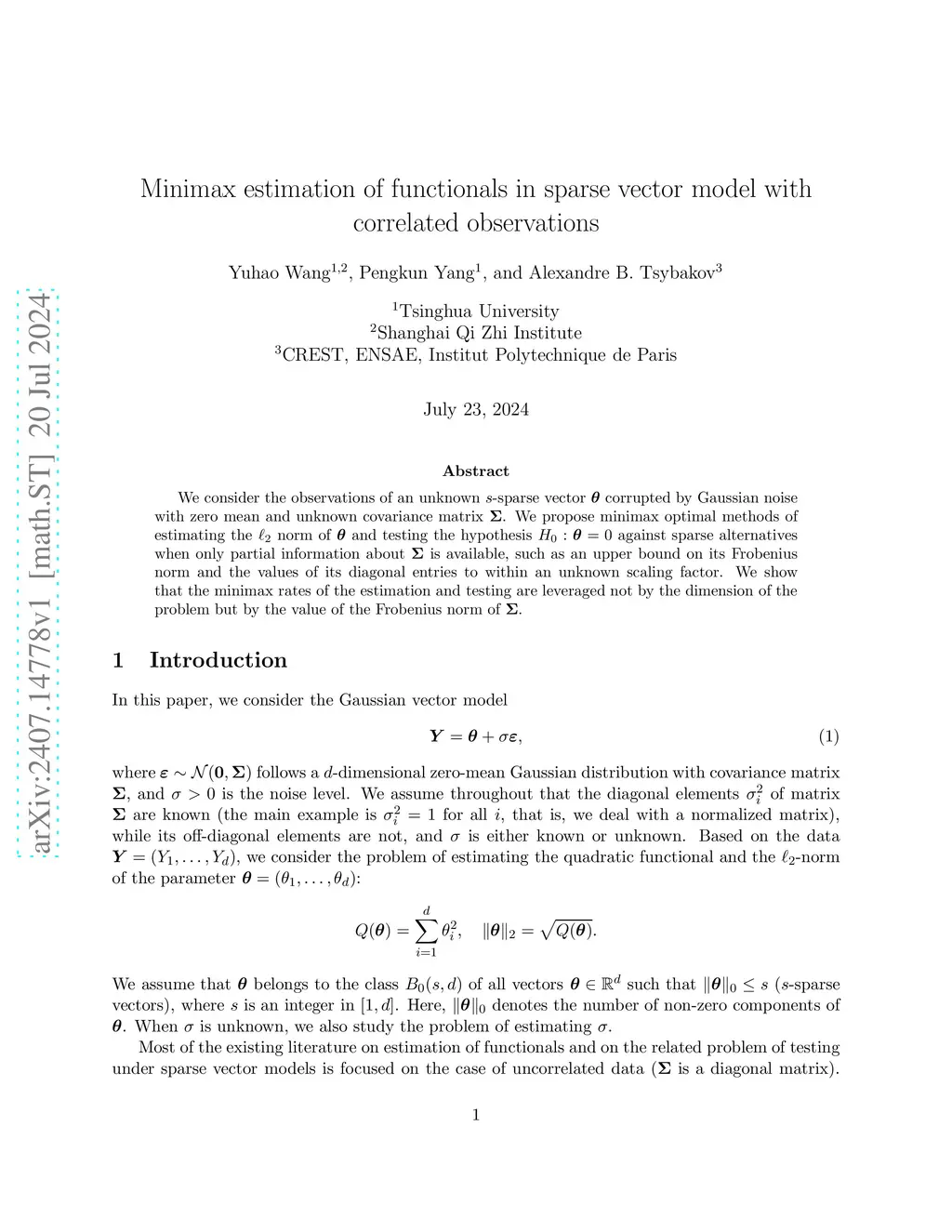 We consider the observations of an unknown -sparse vector corrupted by Gaussian noise with zero mean and unknown covariance matrix . We propose minimax optimal methods of estimating the norm of and testing the hypothesis against sparse alternatives when only partial information about is available, such as an upper bound on its Frobenius norm and the values of its diagonal entries to within an unknown scaling factor. We show that the minimax rates of the estimation and testing are leveraged not by the dimension of the problem but by the value of the Frobenius norm of .