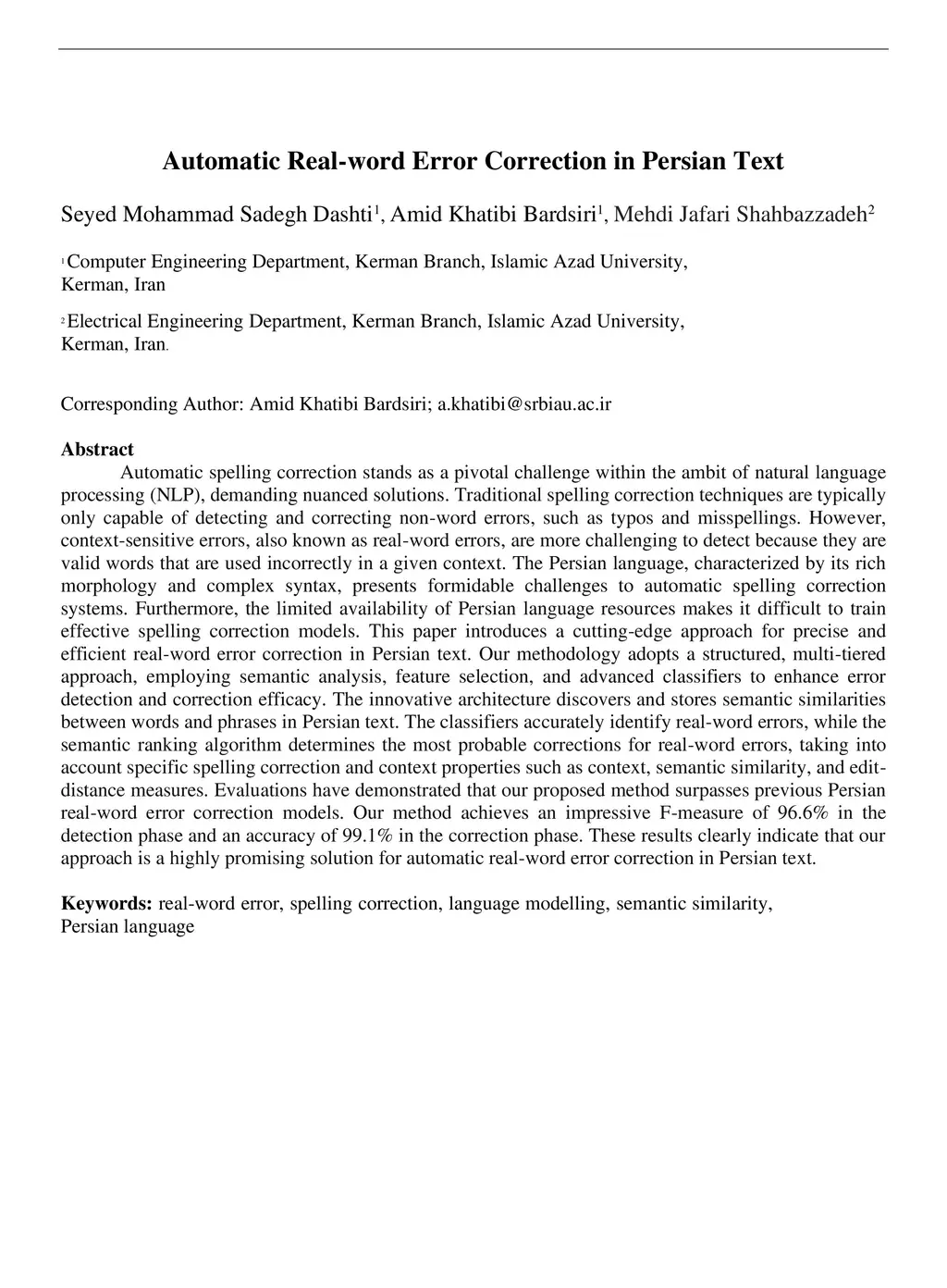 Automatic Real-word Error Correction in Persian Text